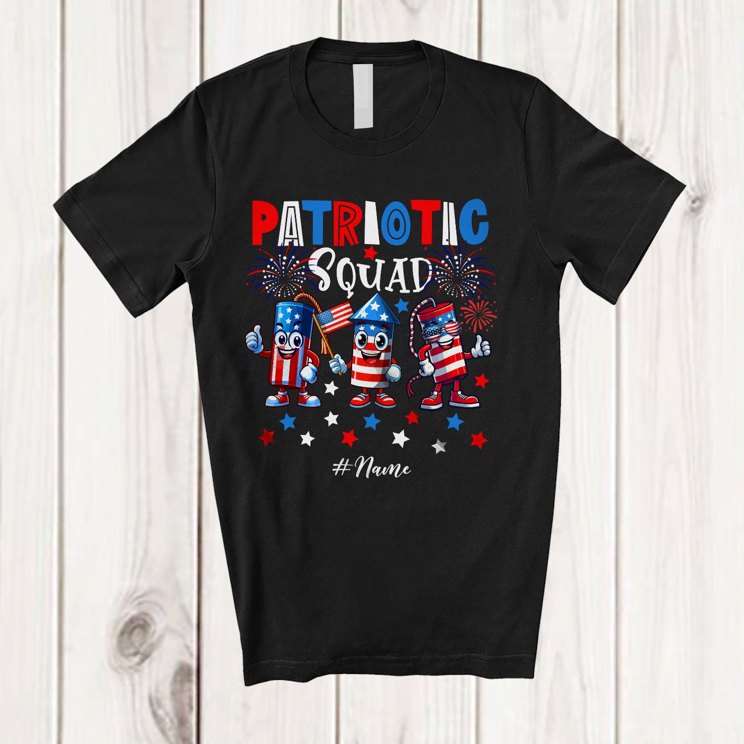Personalized Patriotic Squad; Joyful 4th of July Birthday 3 Firecrackers; Custom Name Patriotic T-Shirt