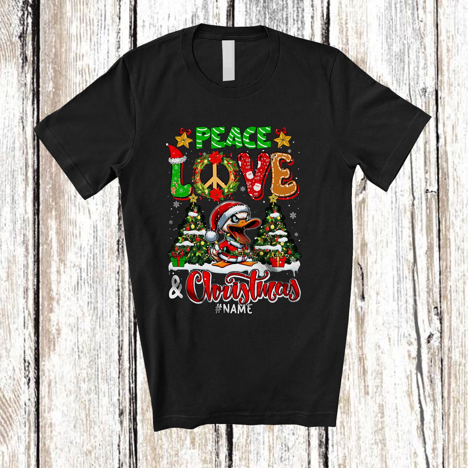 Personalized Peace Love And Christmas; Fantastic Custom Name Farmer Santa Duck; Farm T-Shirt