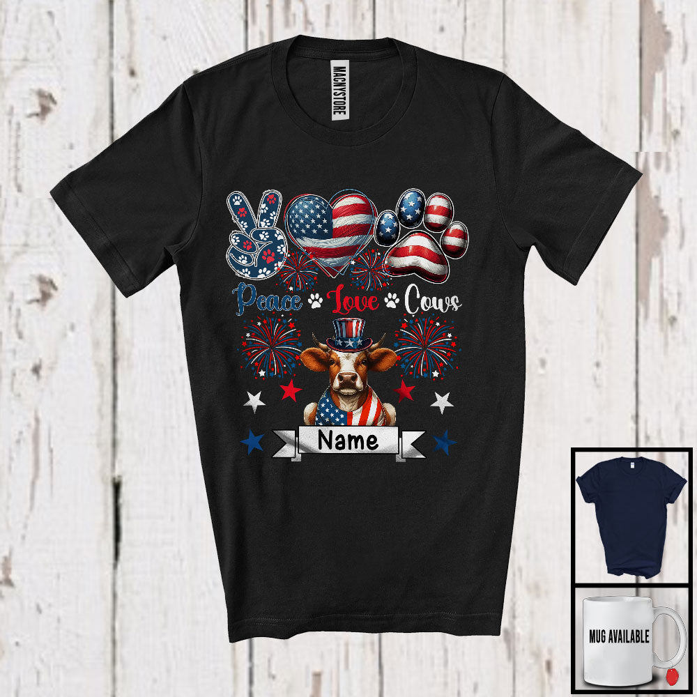 new MacnyStore - Personalized Peace Love Cows, Awesome 4th Of July Custom Name Kitten, Patriotic T-Shirt – Macnystore