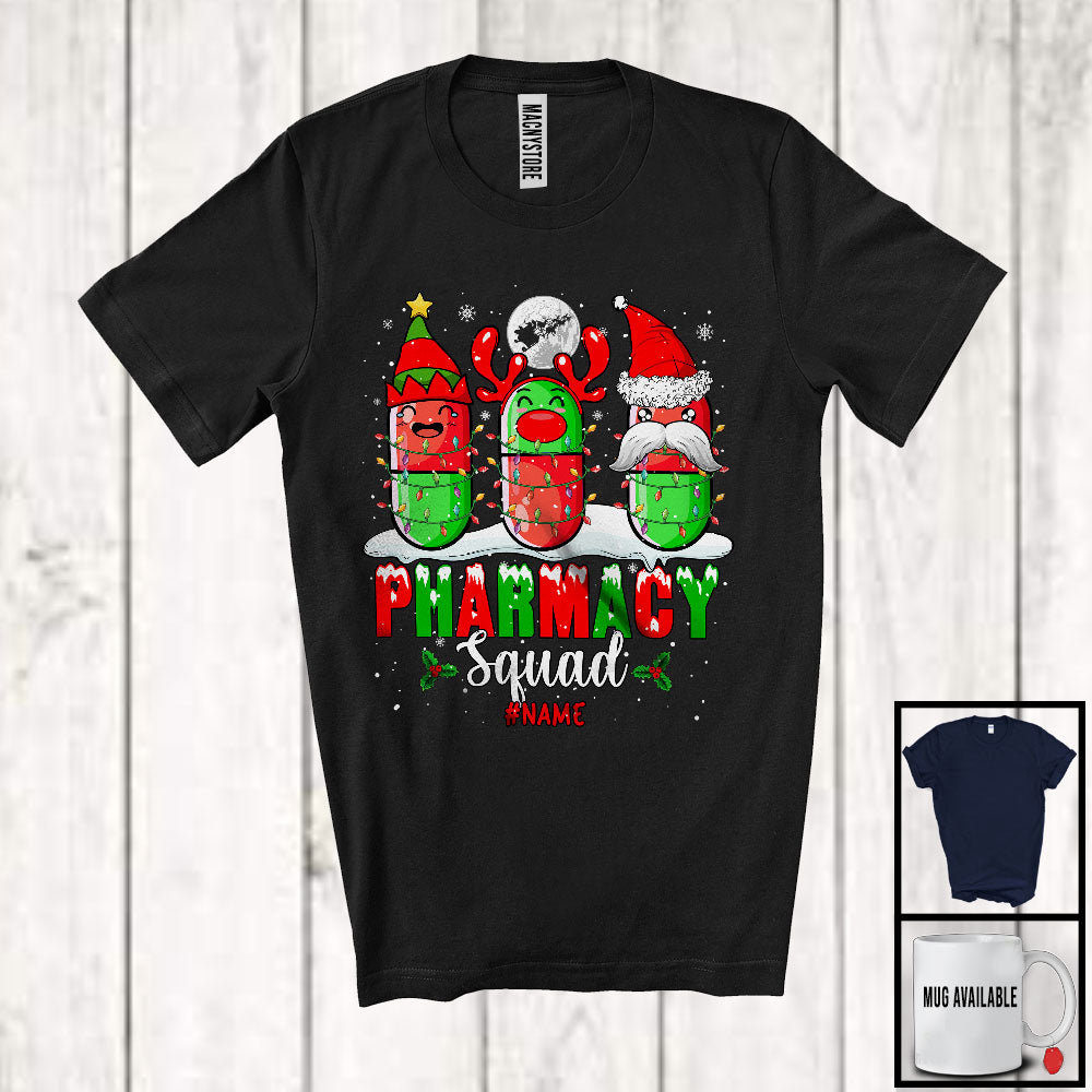 Personalized Pharmacy Squad; Lovely Christmas Three Pills; Custom Name Pharmacist Nurse T-Shirt