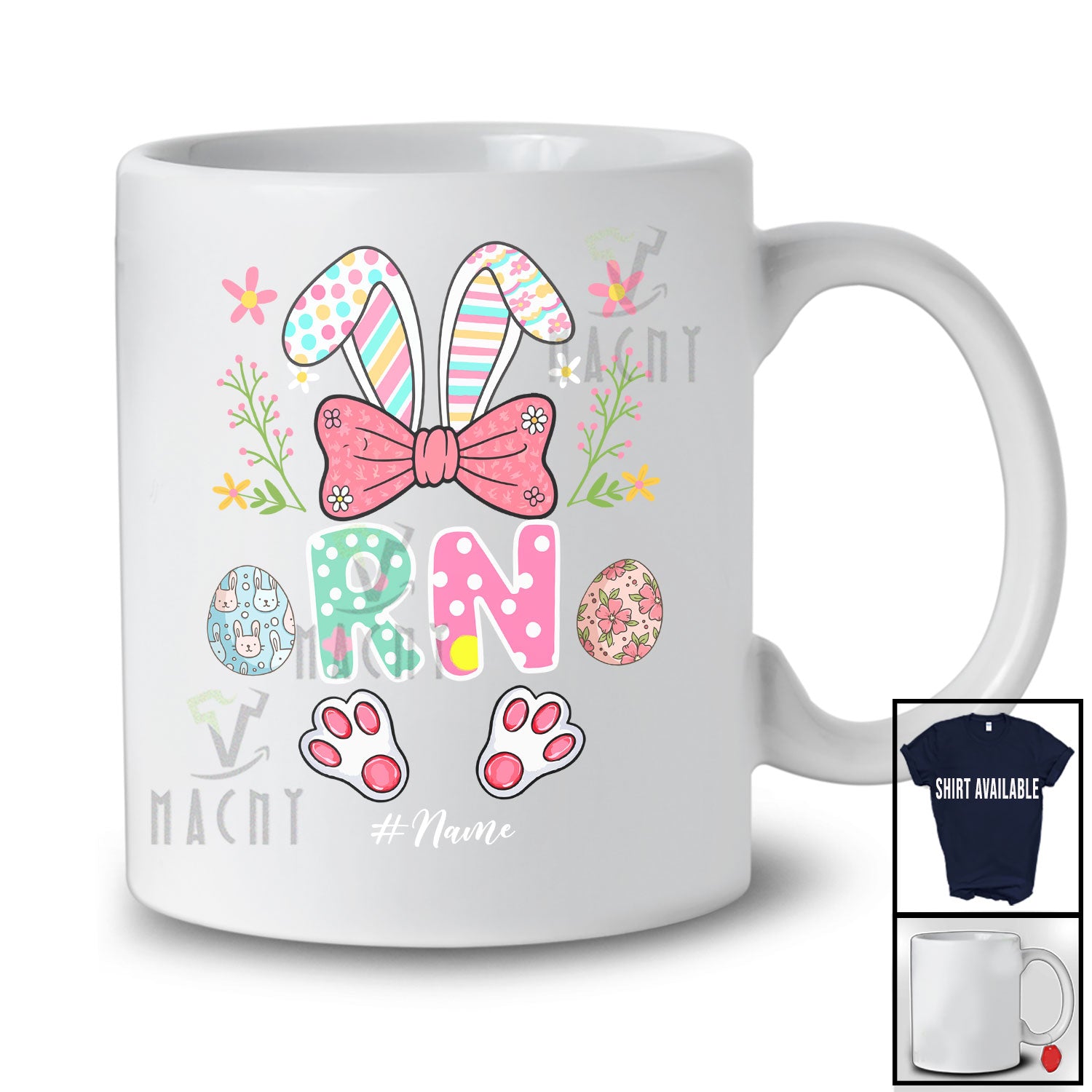 This Personalized RN; Lovely Bunny Egg Hunt Flowers; Custom Name Nurse Nursing Jobs Family T-Shirt is great idea gift for your family, friends in this birthday, christmas, mother's day, father's day, patrick's day or any holiday.