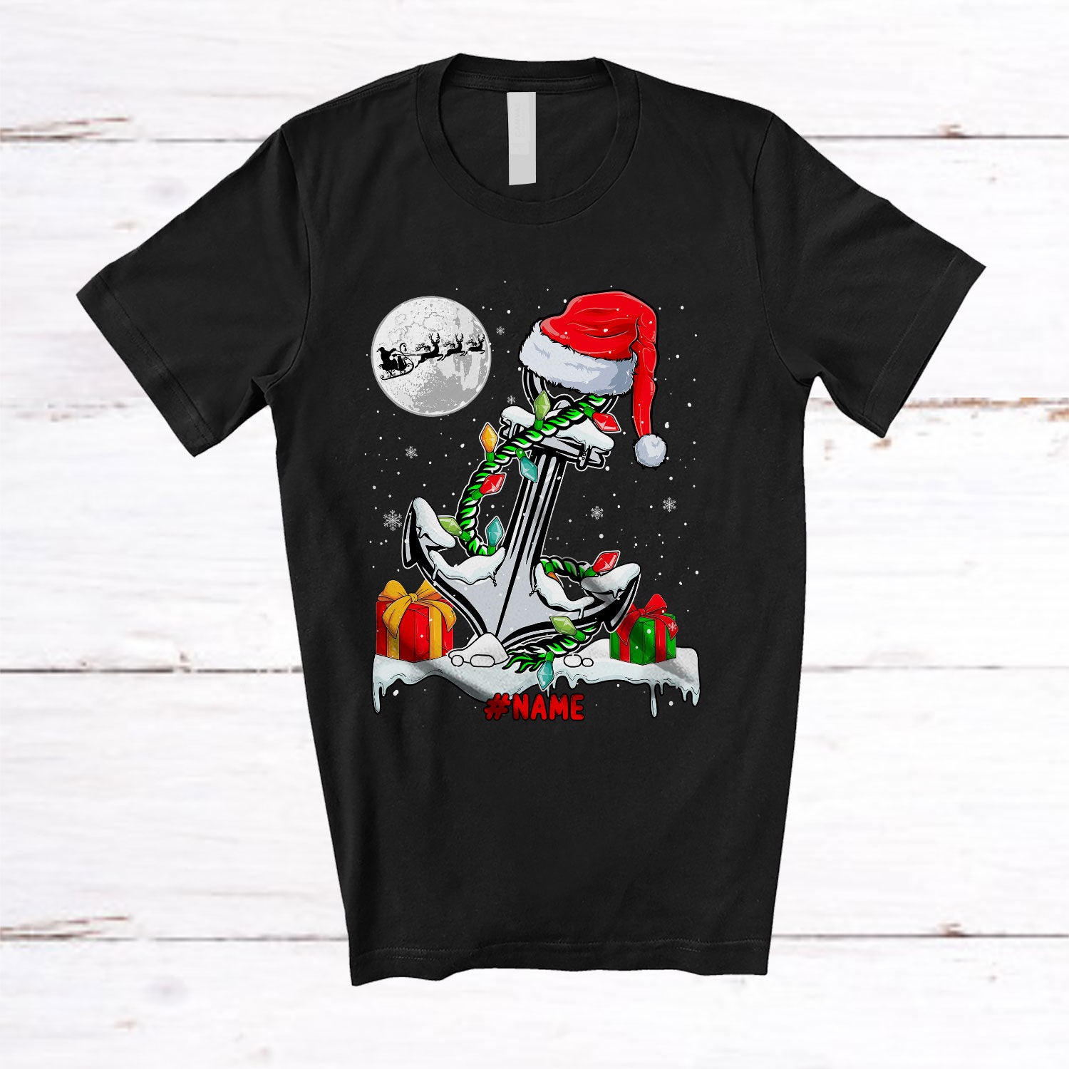 Personalized Santa Anchor Snowing; Joyful Christmas Cruise Boating; Custom Name Captain T-Shirt