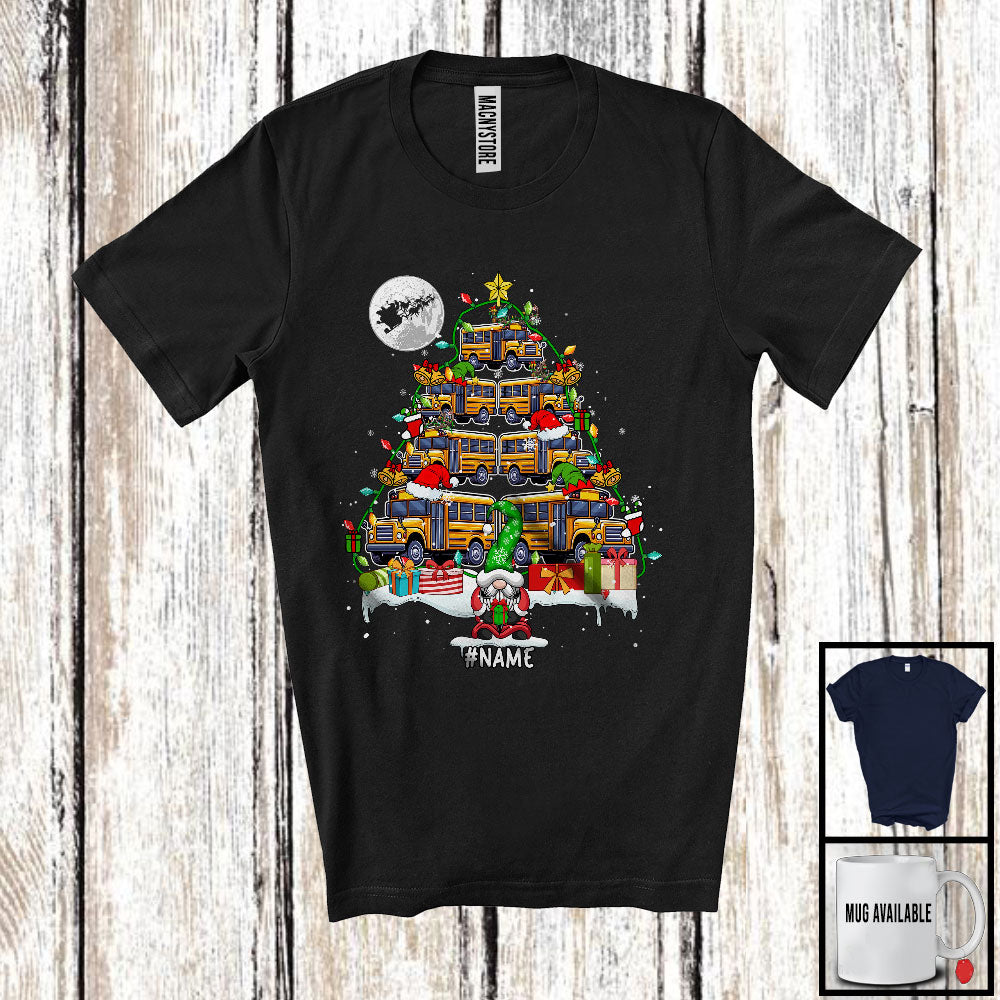 Personalized Santa Elf School Bus Christmas Tree; Awesome X-mas Custom Name Driver; Gnome T-Shirt