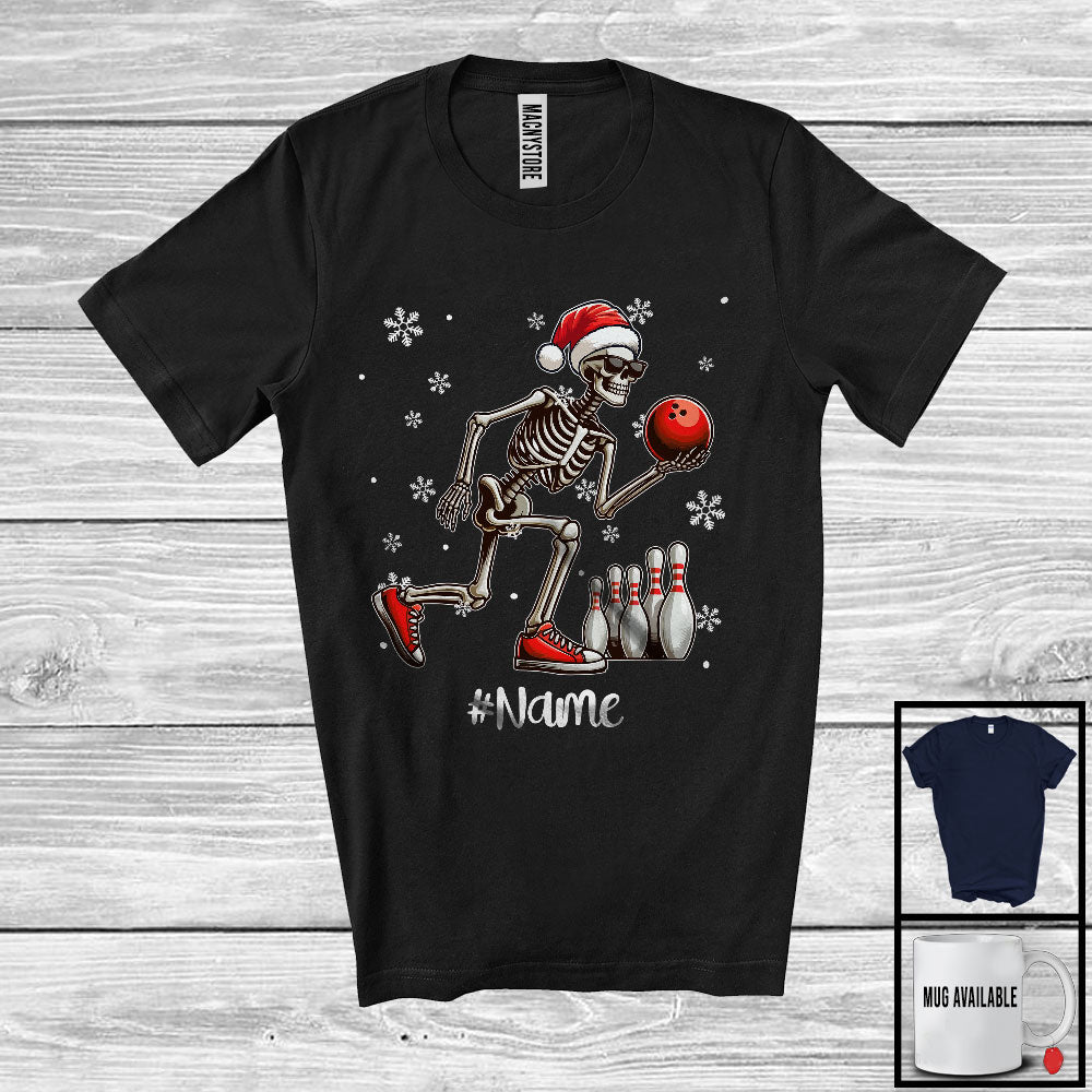 Personalized Santa Skeleton Playing Bowling, Joyful Christmas Custom Name Bowling Player T-Shirt