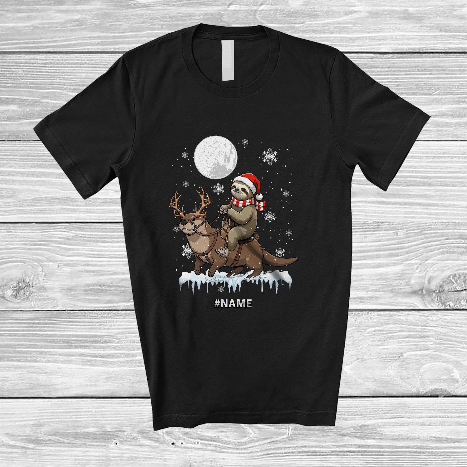 Personalized Santa Sloth Riding Otter Reindeer; Lovely Christmas Custom Name Sea Animal T-Shirt