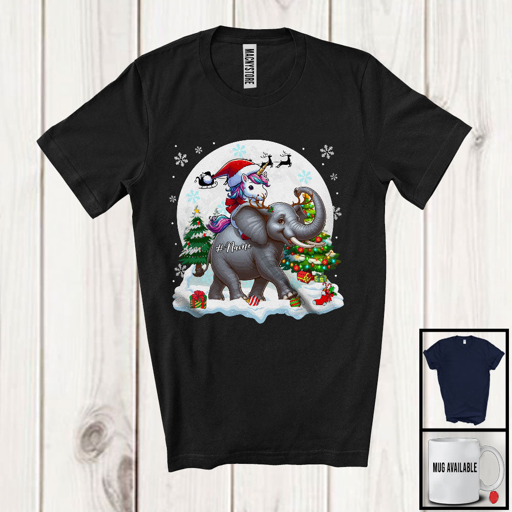 Personalized Santa Unicorn Riding Elephant Reindeer; Awesome Christmas Custom Name Elephant T-Shirt