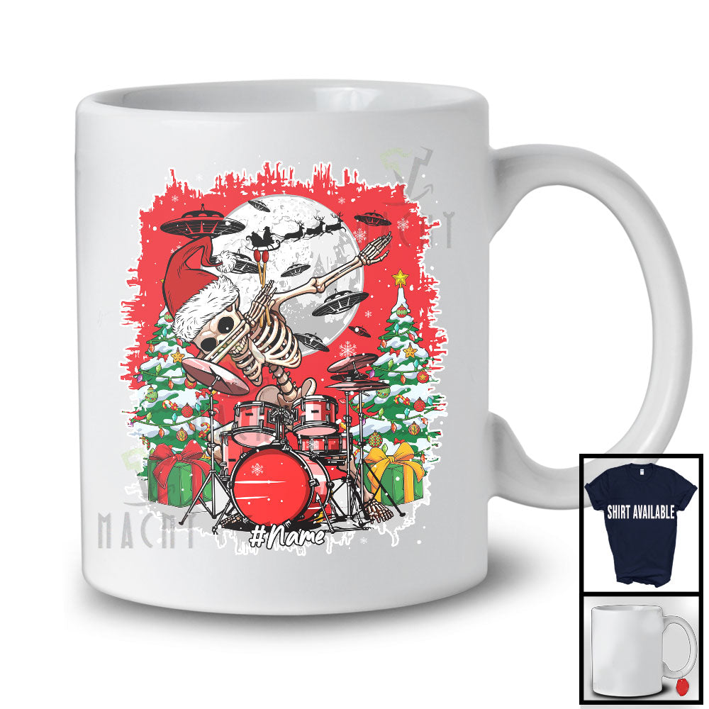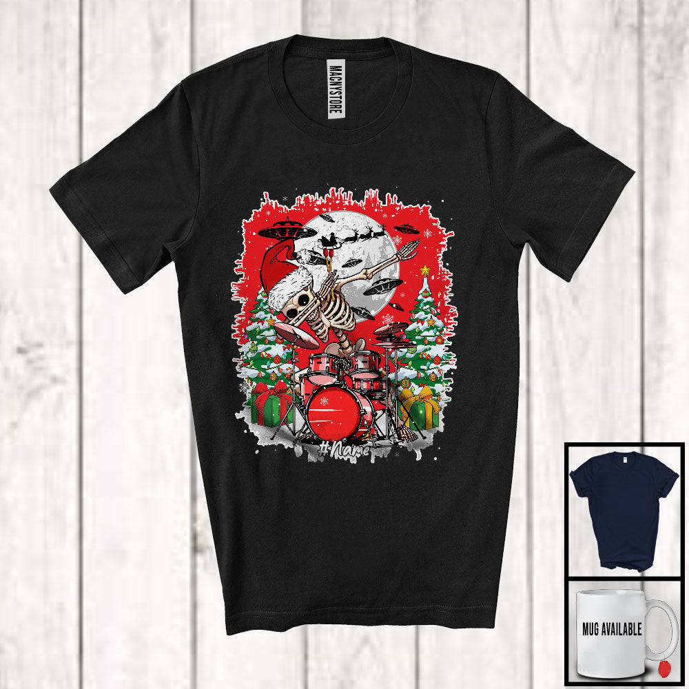 Personalized Skeleton Playing Drum; Joyful Christmas Dabbing Santa Skeleton; UFO Custom Name T-Shirt