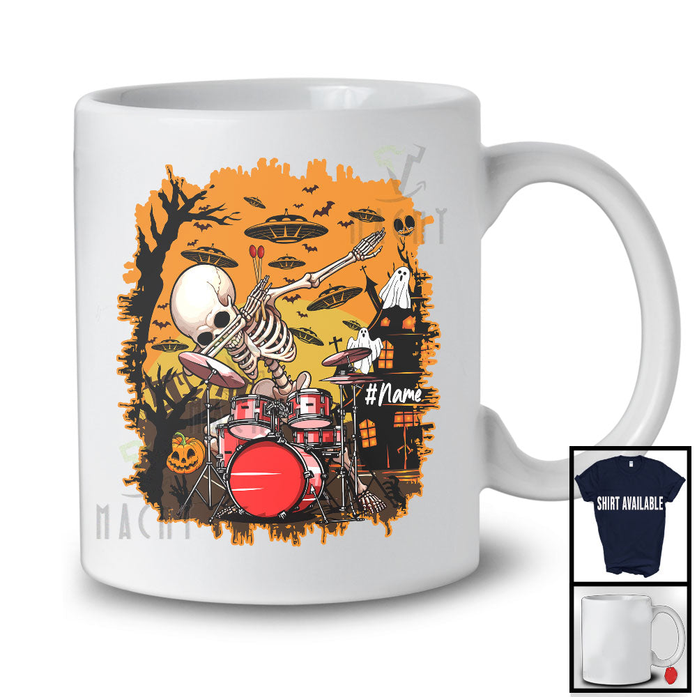 Personalized Skeleton Playing Drum; Scary Halloween Dabbing Skeleton; UFO Custom Name T-Shirt