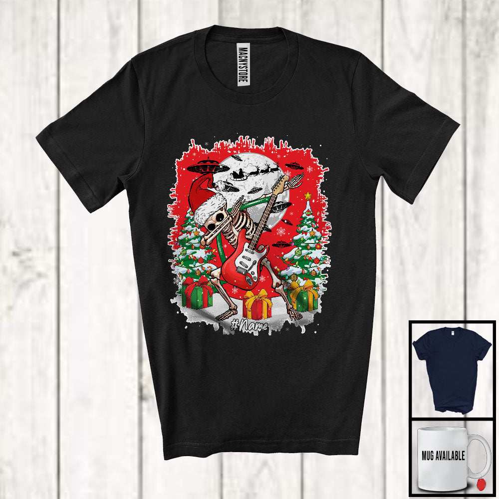 Personalized Skeleton Playing Guitar; Joyful Christmas Dabbing Santa Skeleton; UFO Custom Name T-Shirt