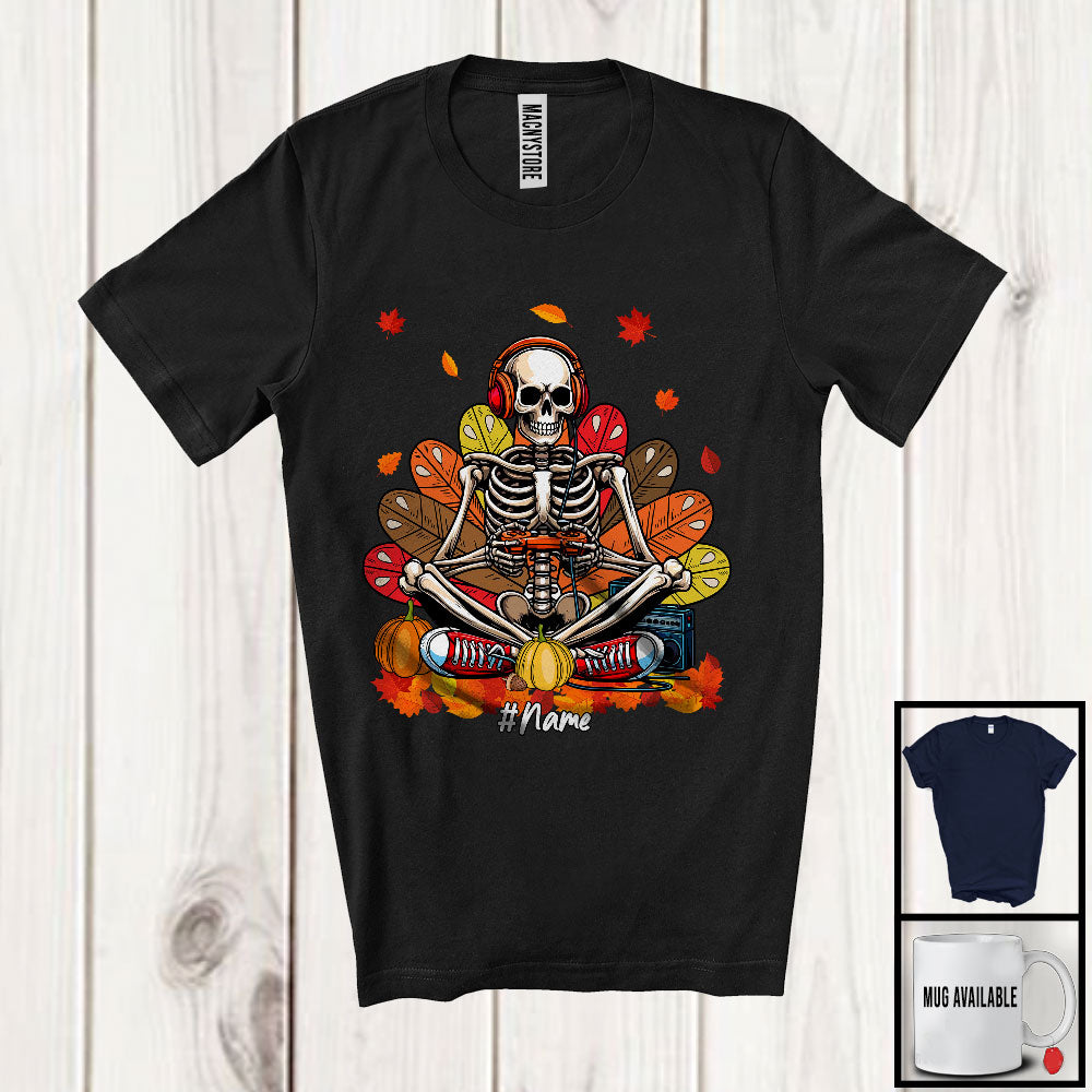 Personalized Skeleton Video Gaming; Joyful Thanksgiving Skeleton Turkey; Custom Name Gamer T-Shirt. This cotton t-shirt is a durable staple product with a classic fit. One of the most popular items, it has a relaxed style made for everyday and casual wear.