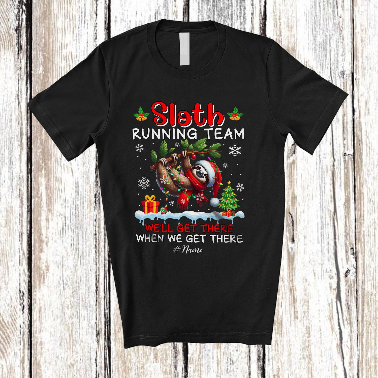 Personalized Sloth Running Team; Lovely Christmas Santa Sloth Custom Name Runner T-Shirt