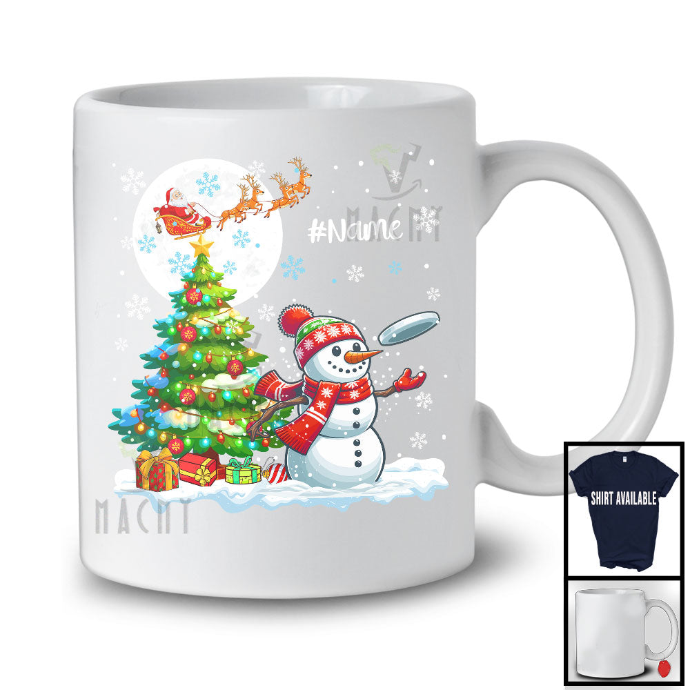 Personalized Snowman Playing Disc Golf Team; Joyful Christmas Custom Name Sport Player T-Shirt