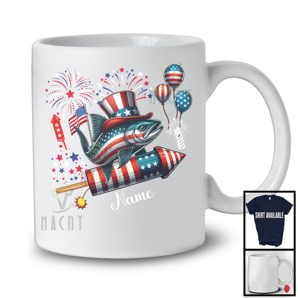 Personalized Sockeye Salmon Riding Firecracker, Lovely 4th Of July USA Flag Custom Name, Fish Sea Animal T-Shirt