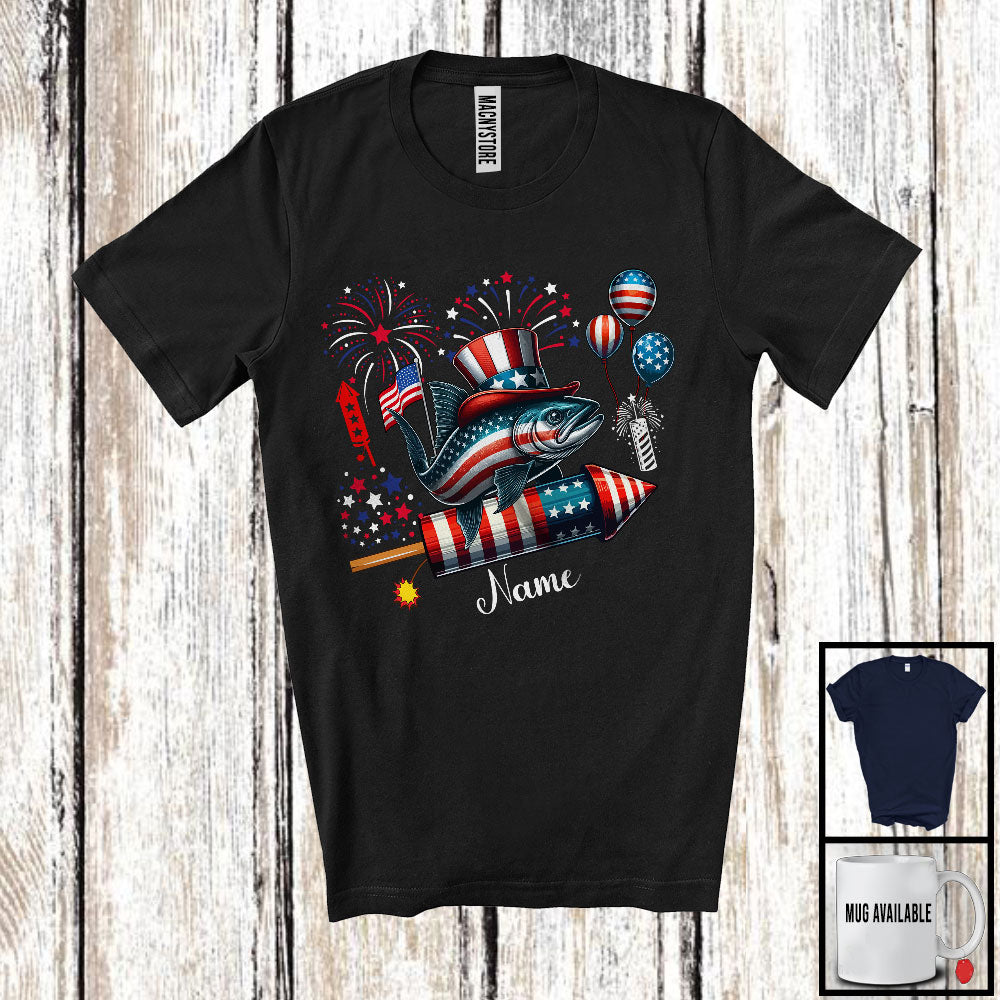 new MacnyStore - Personalized Sockeye Salmon Riding Firecracker, Lovely 4th Of July USA Flag Custom Name, Fish Sea Animal T-Shirt – Macnystore