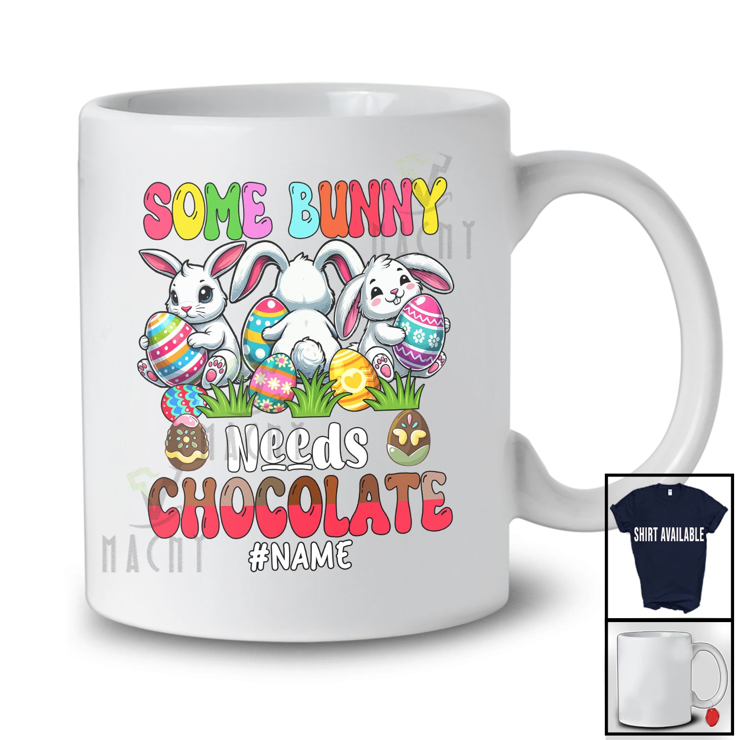 Personalized Some Bunny Needs Chocolate; Adorable Easter Three Bunnies; Eggs Hunt Groovy T-Shirt. This cotton t-shirt is a durable staple product with a classic fit. One of the most popular items, it has a relaxed style made for everyday and casual wear.