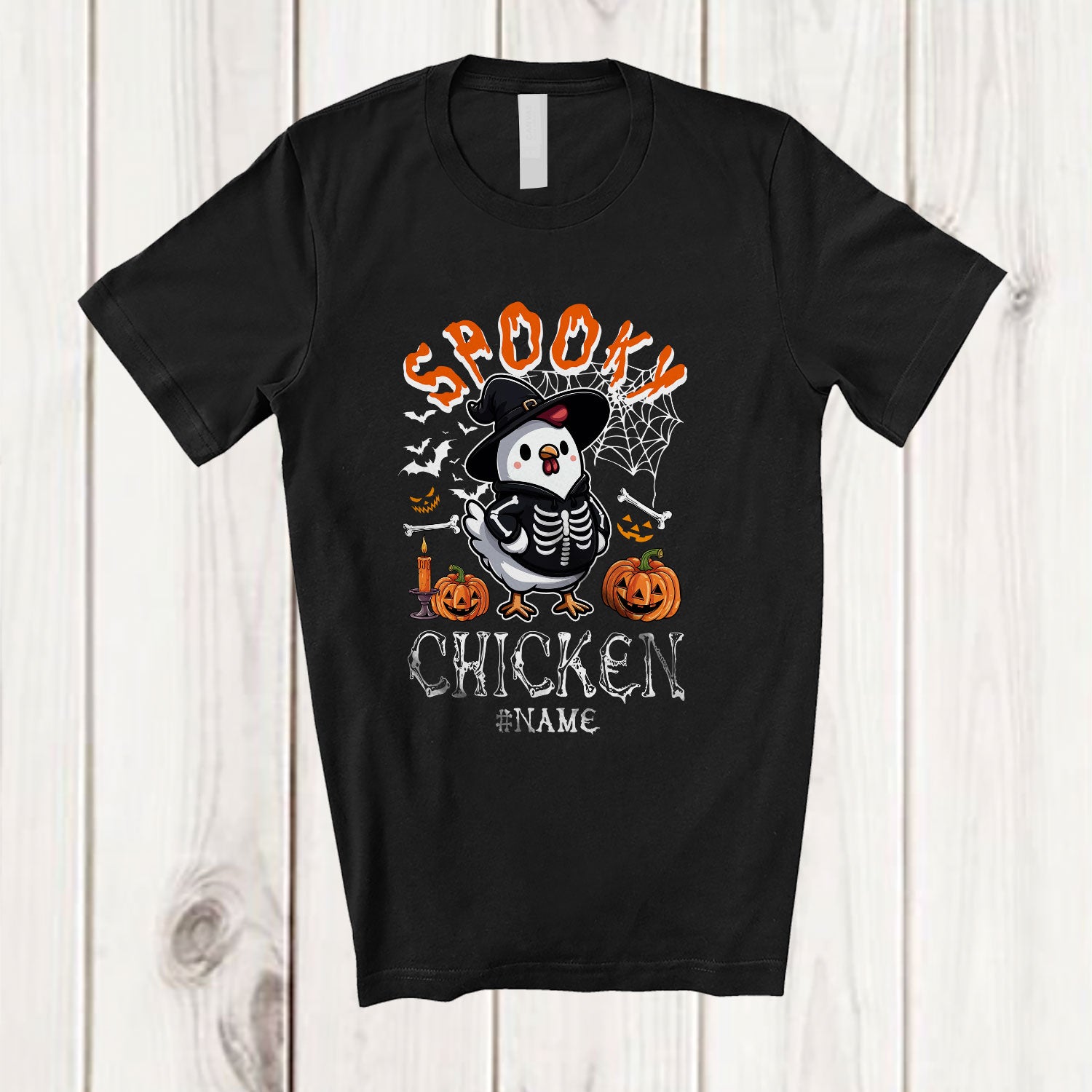 new MacnyStore - Personalized Spooky Chicken; Scary Halloween Custom Name Chicken Witch Skeleton; Farmer T-Shirt – Macnystore