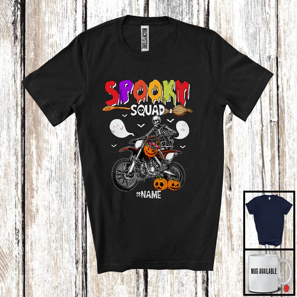 This Personalized Spooky Squad; Scary Halloween Skeleton Riding Dirt Bike; Custom Name Biker T-Shirt is great idea gift for your family, friends in this birthday, christmas, mother's day, father's day, patrick's day or any holiday.