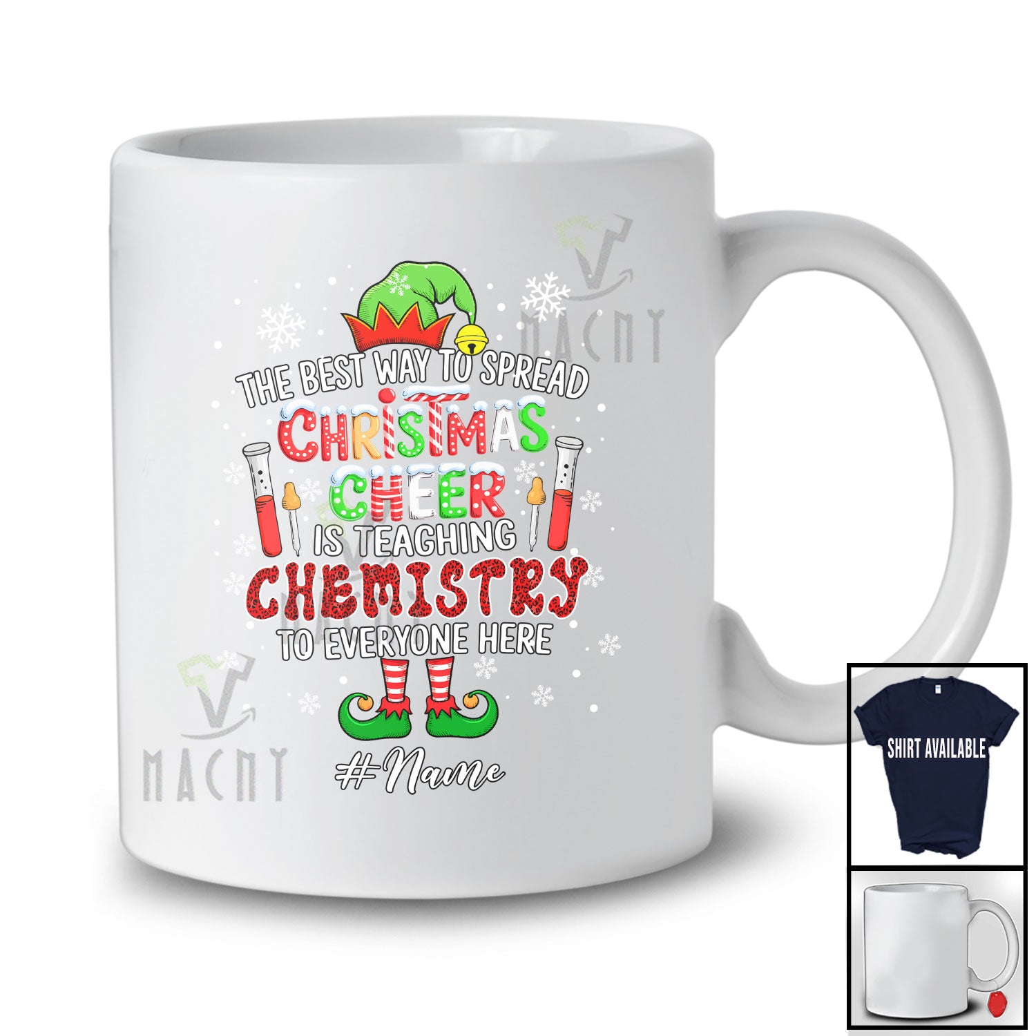 • Personalized Spread Christmas Cheer Is Teaching Chemistry; Lovely Elf Leopard Custom Name Teacher T-Shirt. This cotton t-shirt is a durable staple product with a classic fit. One of the most popular items, it has a relaxed style made for everyday and casual wear.