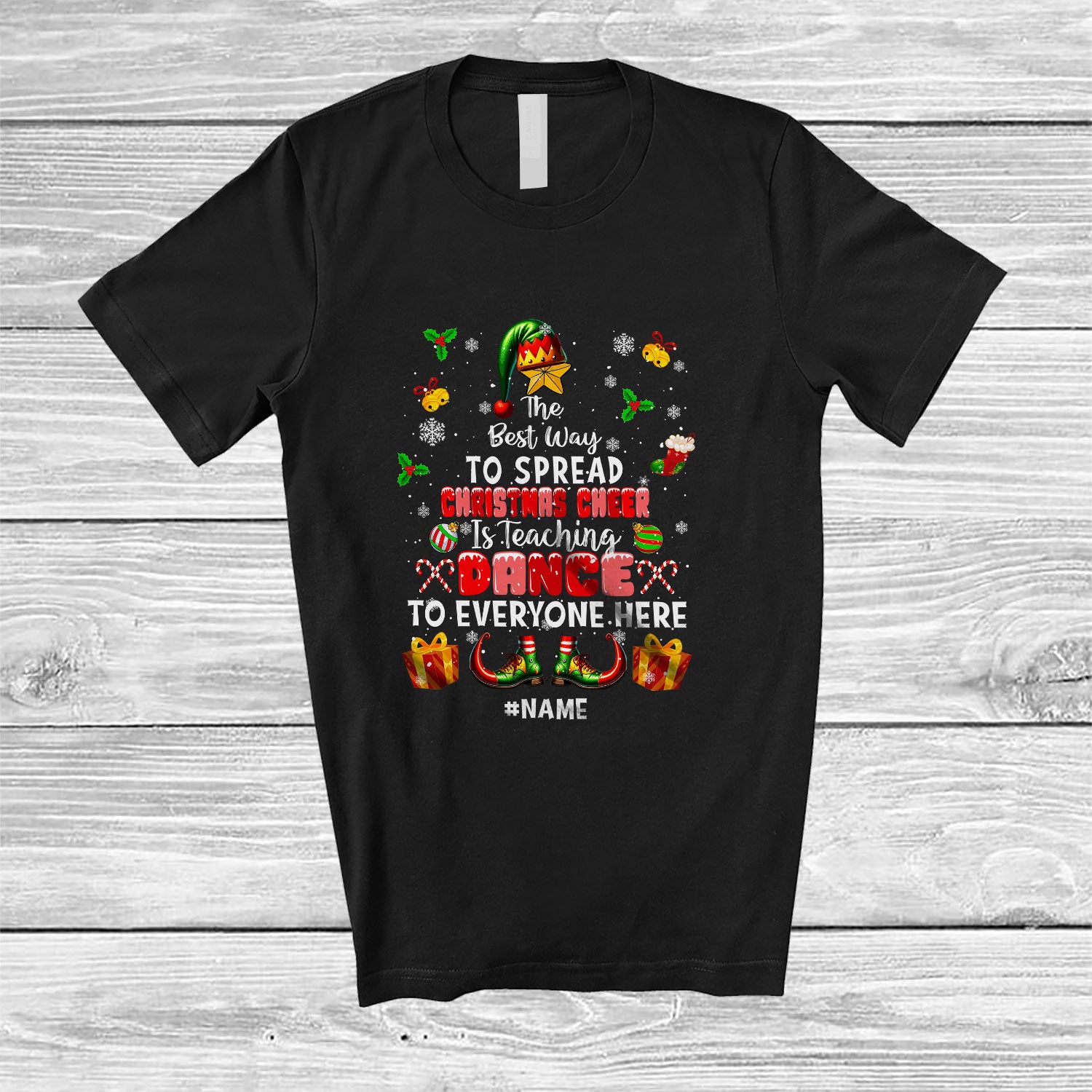 Personalized Spread Christmas Cheer Is Teaching Dance; Amusing Custom Name Elf Teacher T-Shirt