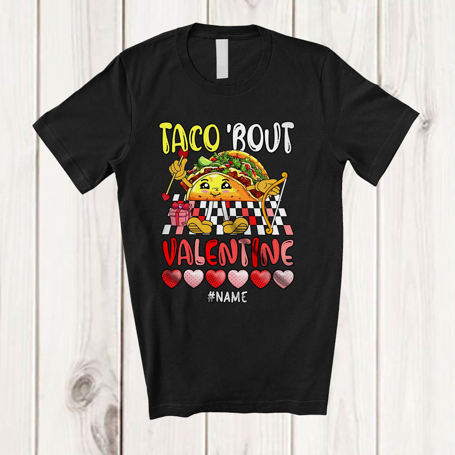 Personalized Taco 'Bout Valentine; Amazing Custom Name Mexican Taco Hearts; Couple Family T-Shirt