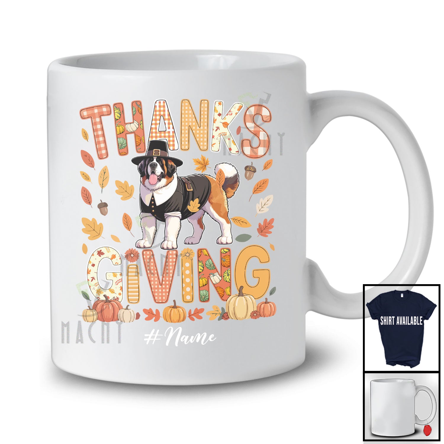 Personalized Thanksgiving; Lovely Plaid Custom Name Pilgrim St. Bernard Owner; Fall Leaf Family T-Shirt