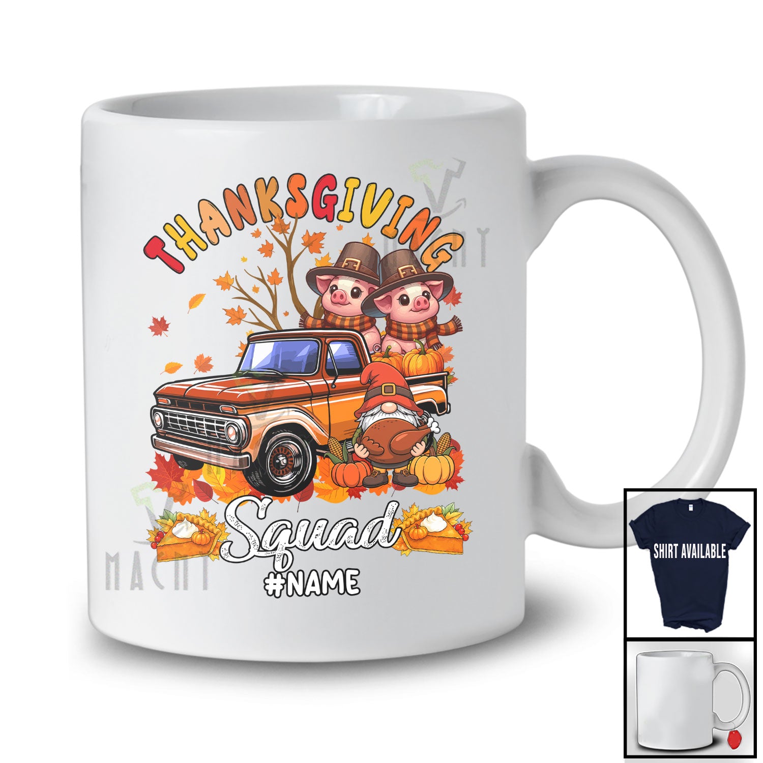 This Personalized Thanksgiving Squad; Adorable Fall Tree Pig On Pickup Truck; Custom Name Farmer T-Shirt is great idea gift for your family, friends in this birthday, christmas, mother's day, father's day, patrick's day or any holiday.