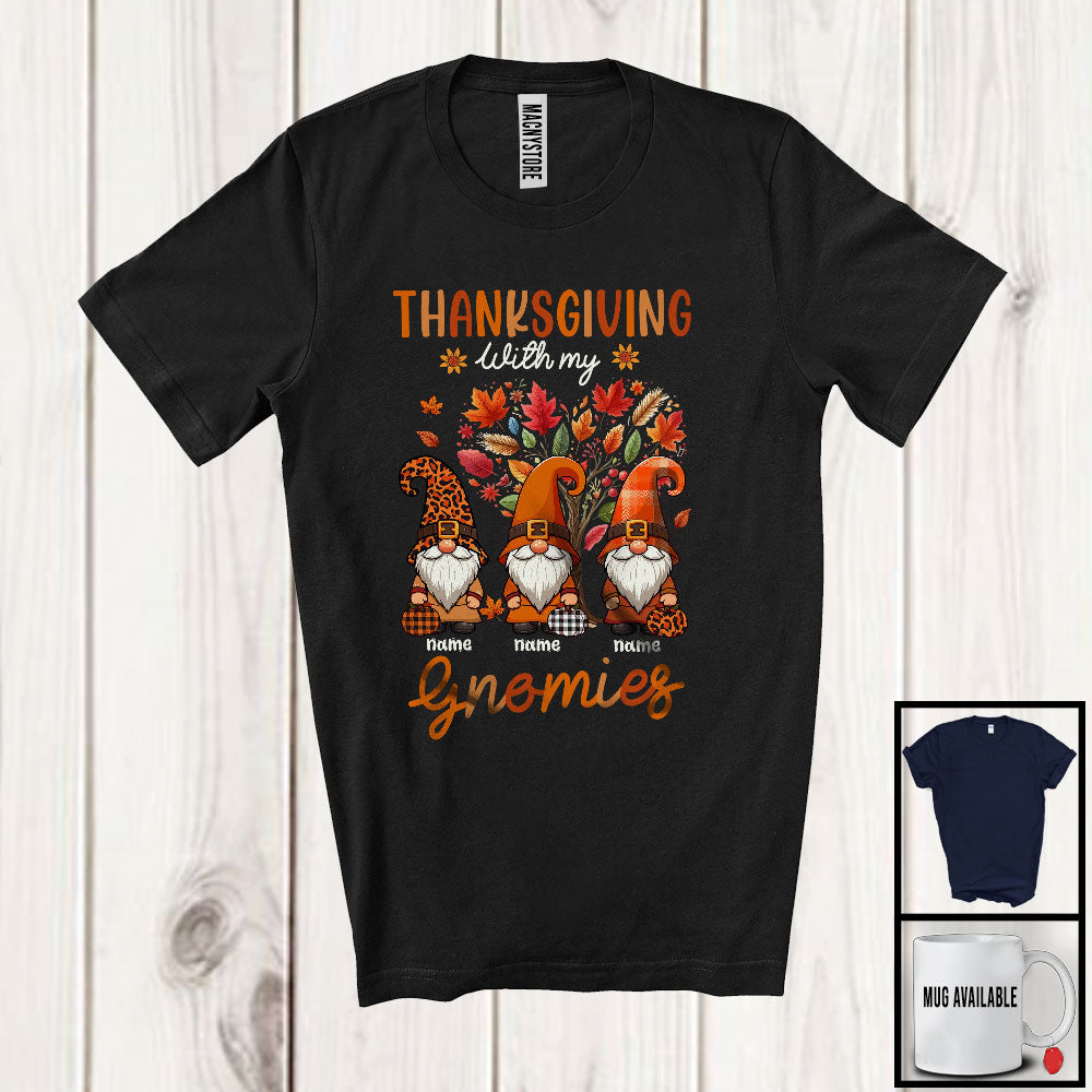 Personalized Thanksgiving With My Gnomies; Amazing Custom Name Three Gnomes; Fall Tree T-Shirt