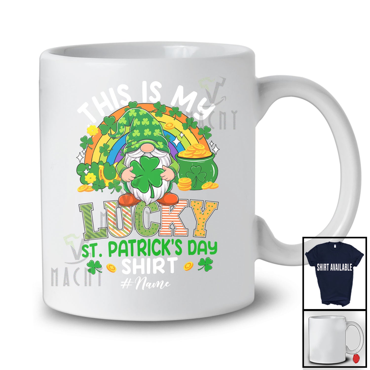 Personalized This Is My St. Patrick's Day Shirt; Awesome Custom Name Gnome Rainbow T-Shirt. This cotton t-shirt is a durable staple product with a classic fit. One of the most popular items, it has a relaxed style made for everyday and casual wear.