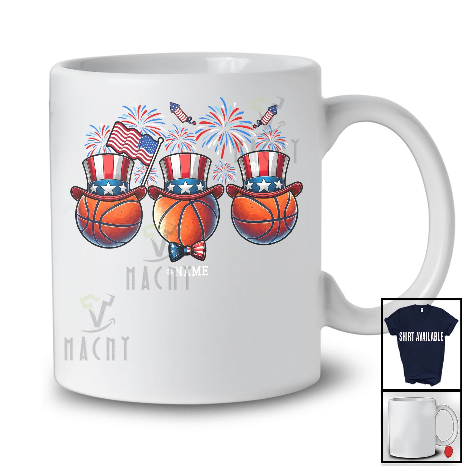 Personalized Three Basketball Ball Uncle Sam Hat; Awesome 4th Of July Custom Name Player Patriotic T-Shirt. This cotton t-shirt is a durable staple product with a classic fit. One of the most popular items, it has a relaxed style made for everyday and casual wear.