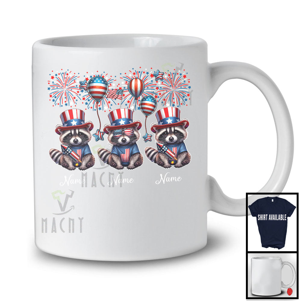Personalized Three Custom Name Raccoon, Amazing 4th Of July Wild Animal, Patriotic Group T-Shirt