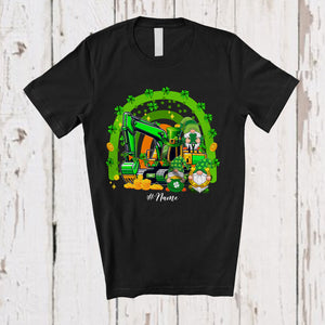 Personalized Three Gnomes With Excavator; Happy St. Patrick's Day Rainbow; Custom Name Family T-Shirt