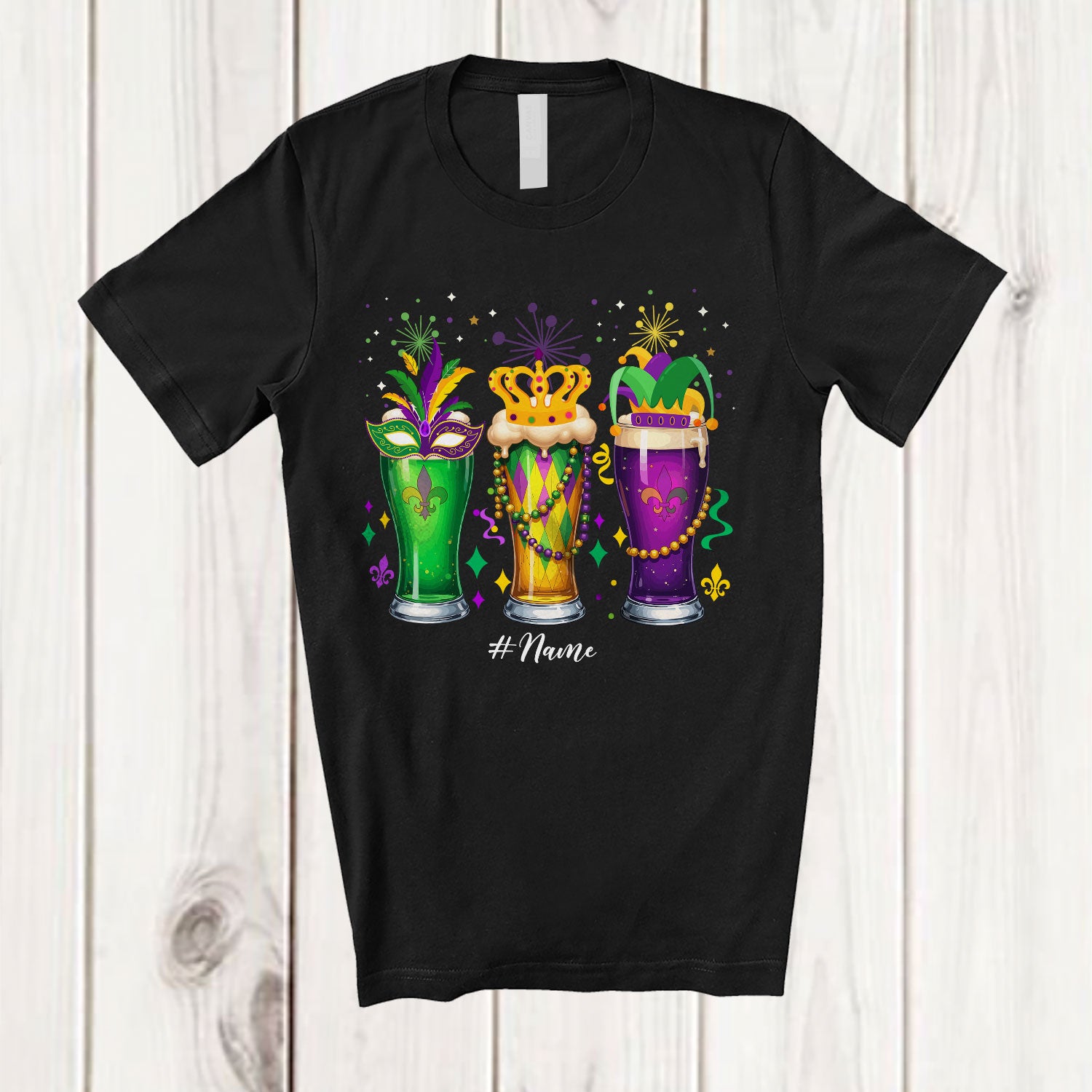 The Personalized Three Mardi Gras Glass Of Beer; Cheerful Custom Name Drunker; Drinking Parades T-Shirt was built with people like you in mind. Something to keep you happy. Every. Single. Day.