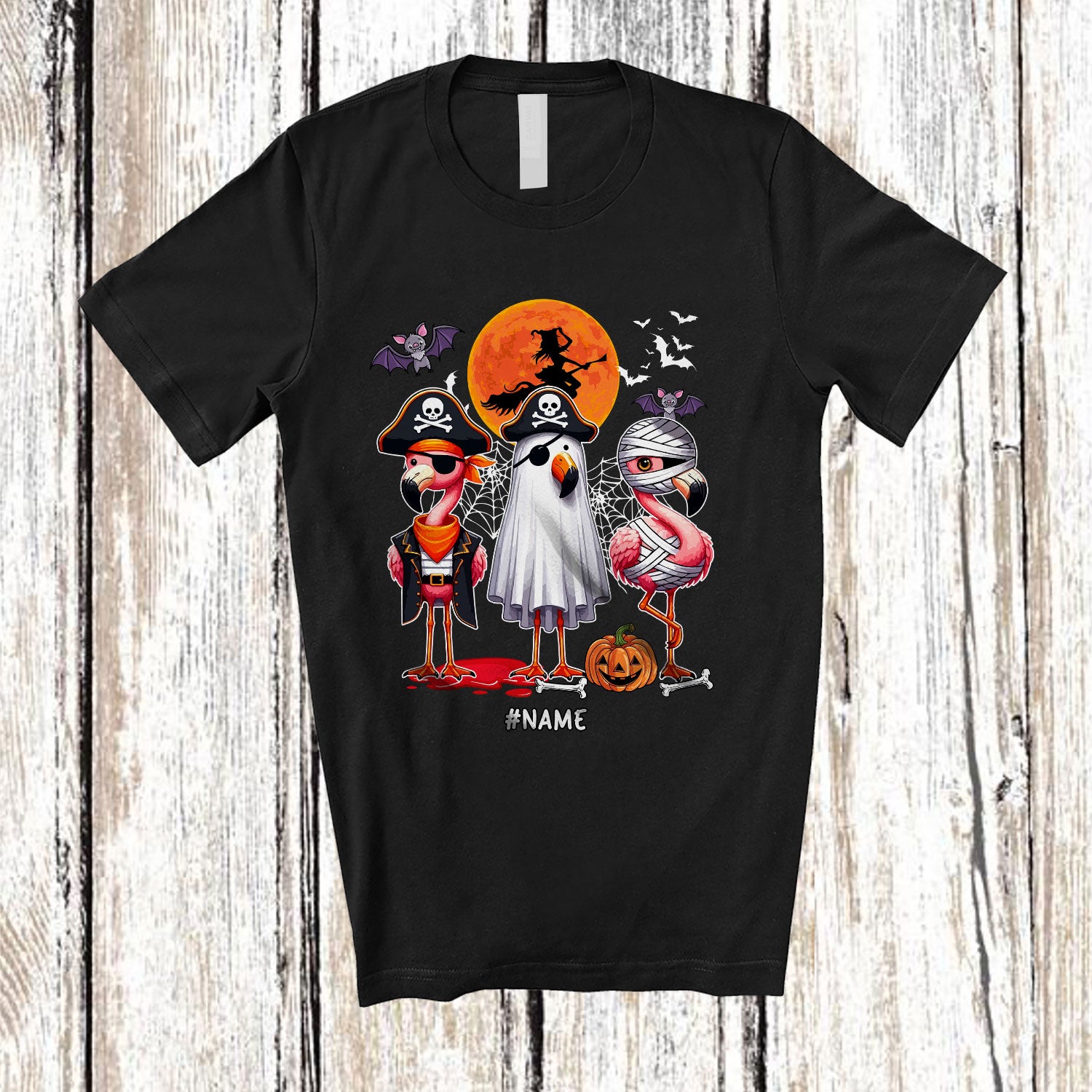 Personalized Three Pirate Mummy Boo Ghost Flamingo; Amazing Halloween Costume Animal; Family T-Shirt