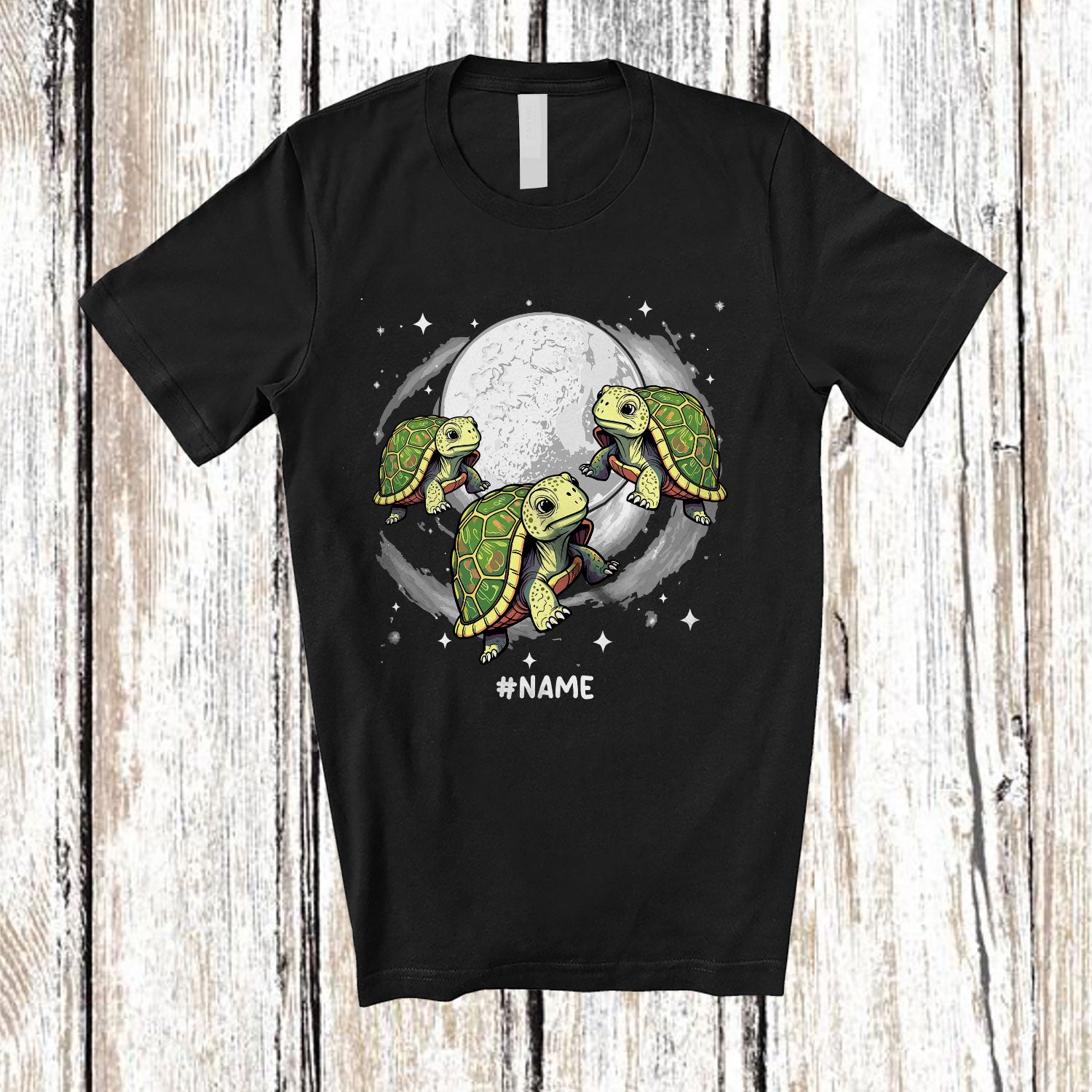 Personalized Three Turtle On Moon; Humorous Custom Name Turtle Sea Animal Space T-Shirt