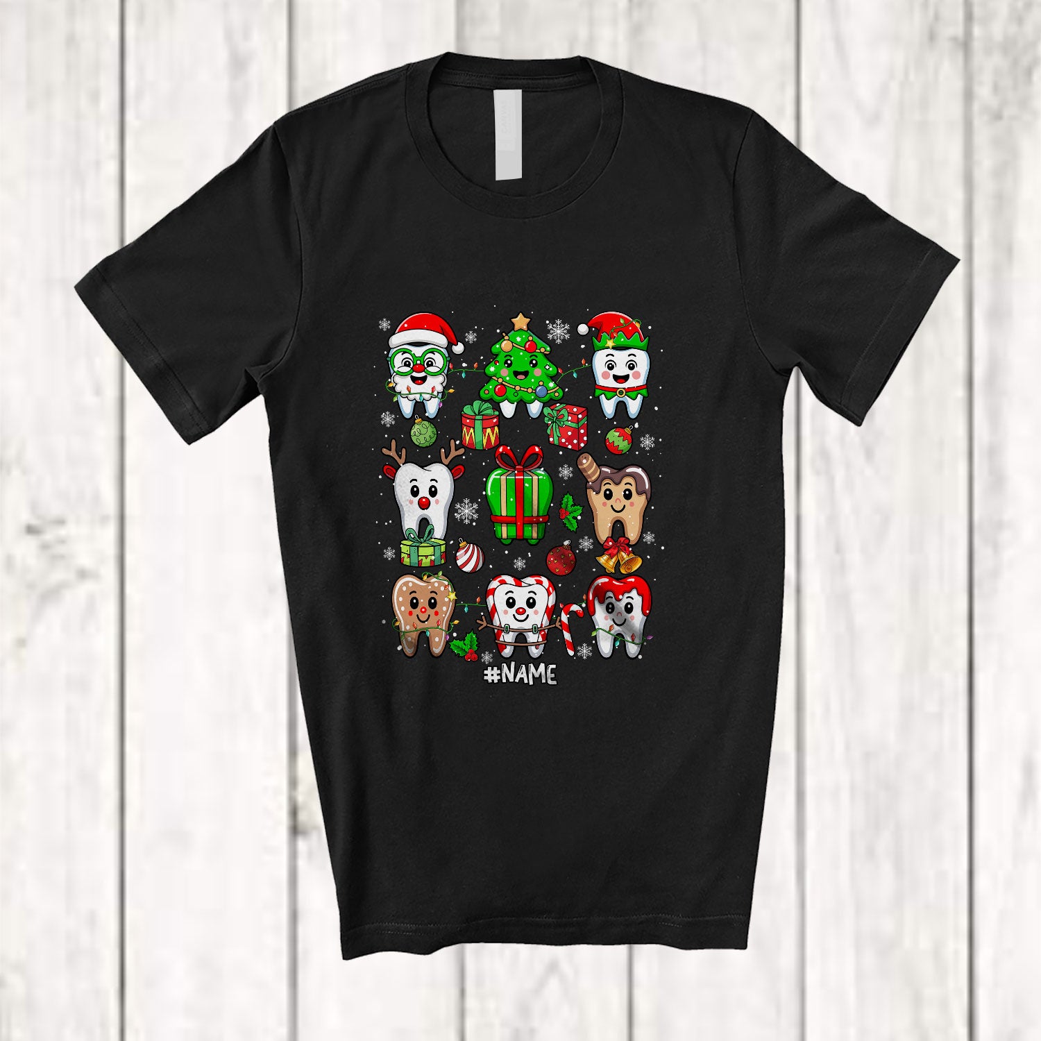 new MacnyStore - Personalized Tooth X-mas Collection; Adorable Christmas Custom Name Dental Dentist Group T-Shirt – Macnystore