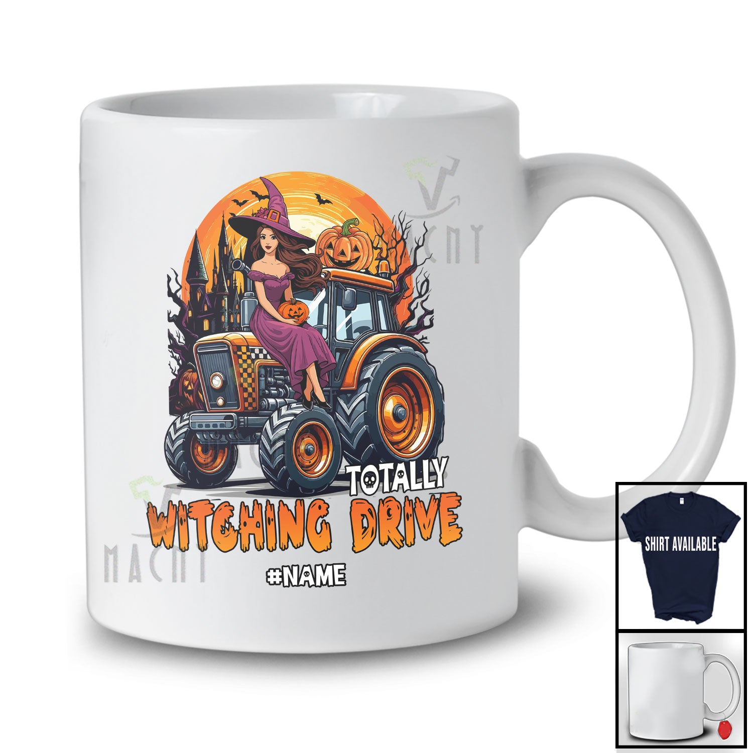 Personalized Totally Witching Drive; Joyful Halloween Moon Custom Name Witch Driving Tractor T-Shirt