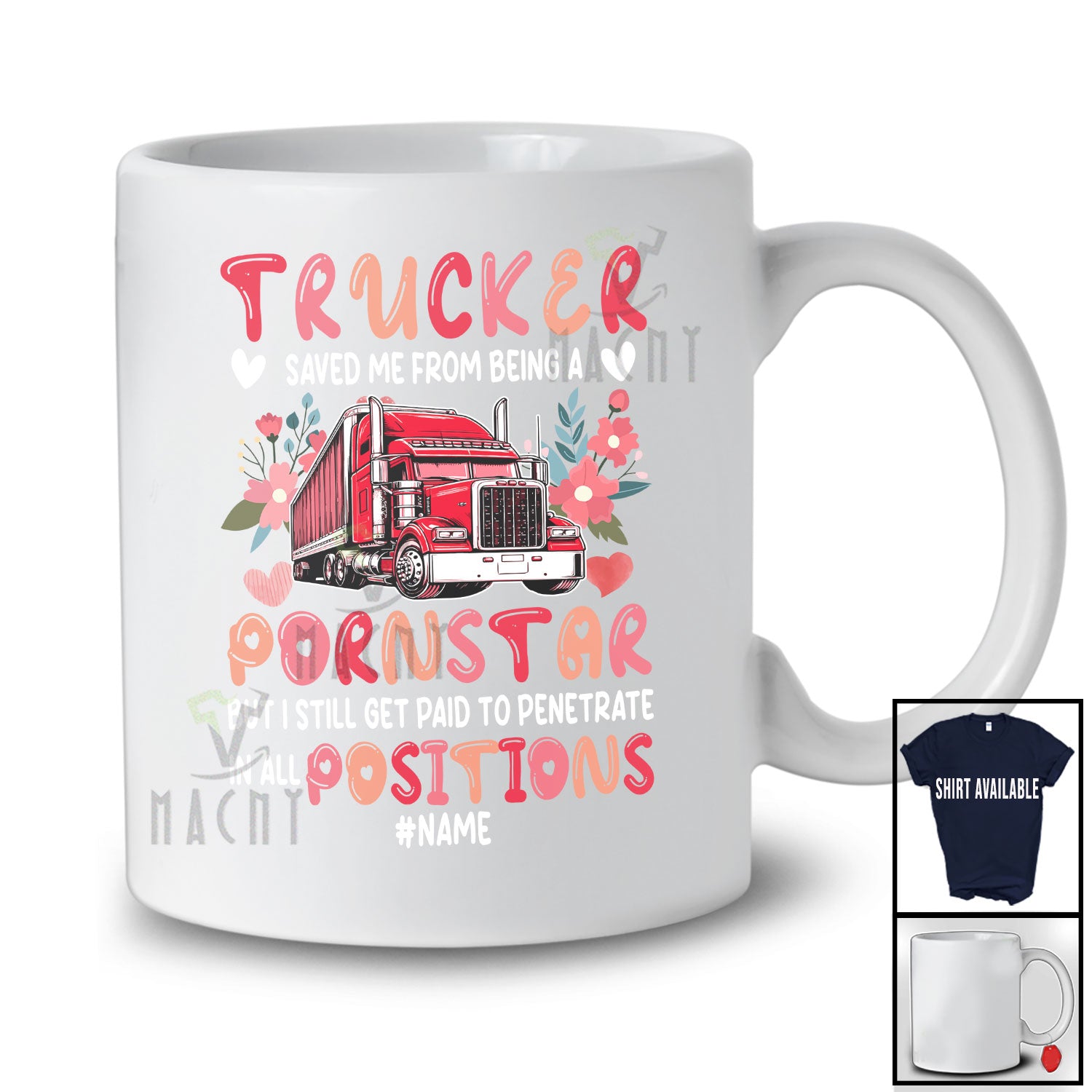 Personalized Trucker Saved Me From Being A Pornstar; Floral Custom Name Trucker Proud Couple T-Shirt. This cotton t-shirt is a durable staple product with a classic fit. One of the most popular items, it has a relaxed style made for everyday and casual wear.