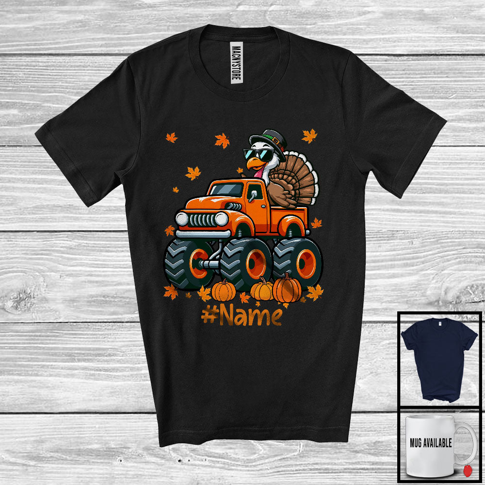 Personalized Turkey Driving Monster Truck; Amazing Thanksgiving Turkey Driver; Custom Name Family T-Shirt