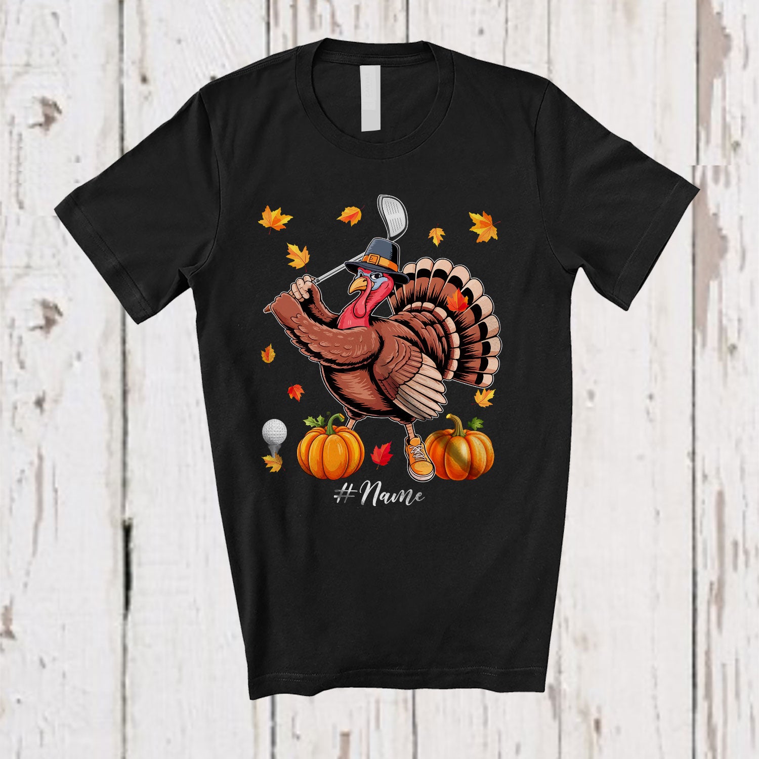 Personalized Turkey Playing Golf; Awesome Thanksgiving Fall Leaves Custom Name Player T-Shirt