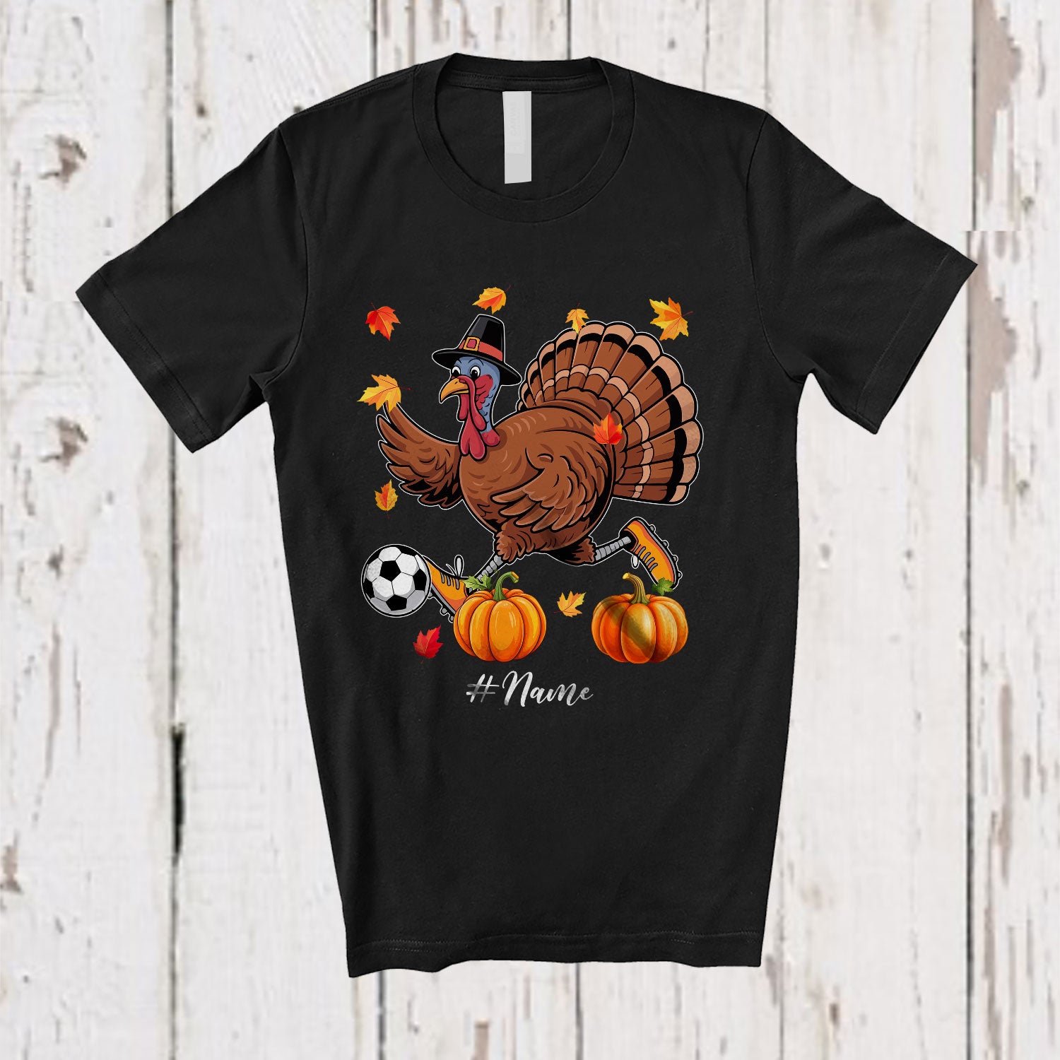 • The Personalized Turkey Playing Soccer; Awesome Thanksgiving Fall Leaves Custom Name Player T-Shirt is far and away, one of our most popular items. People can't seem to get enough of it.