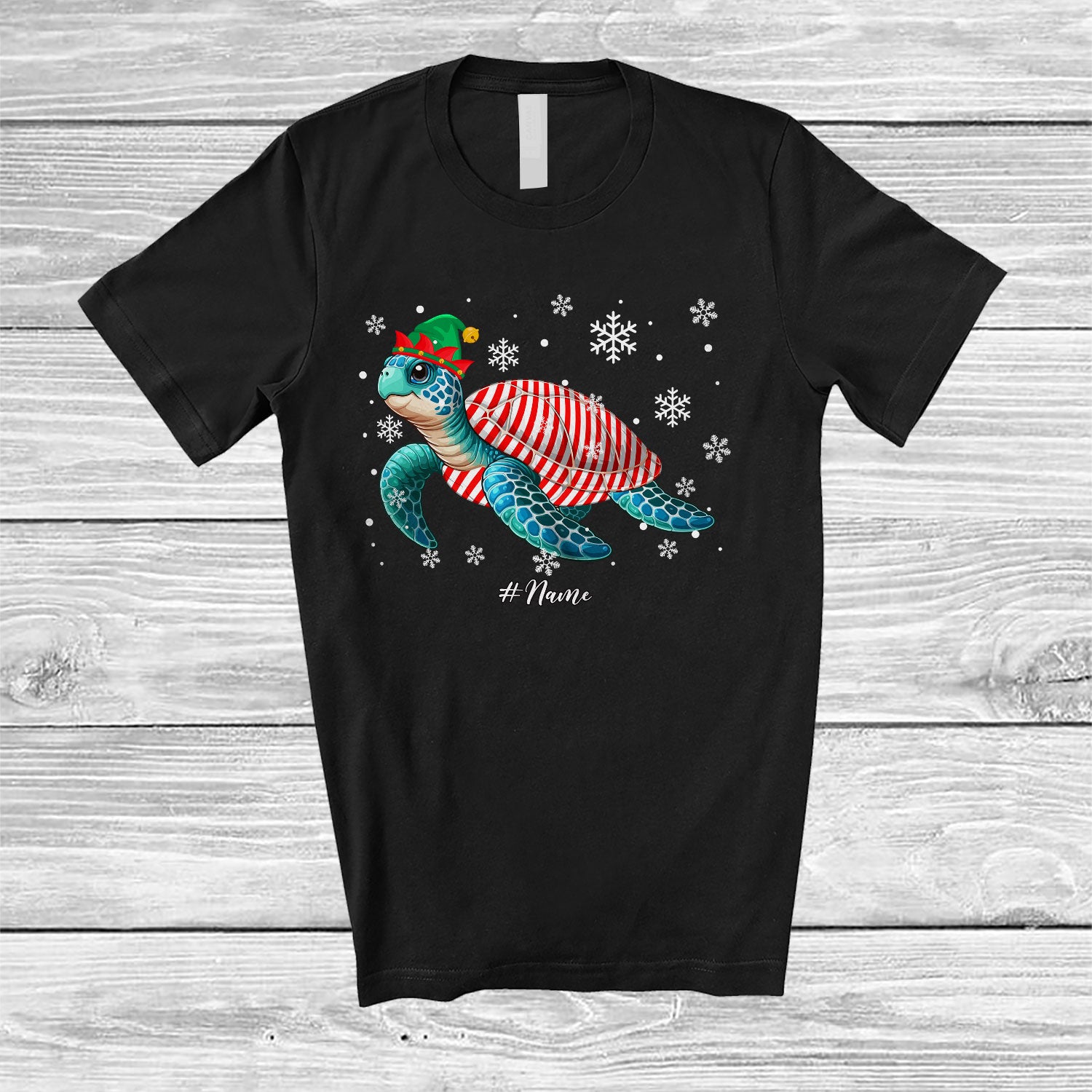 Personalized Turtle Candy Canes Cosplay; Lovely Christmas Custom Name Elf Turtle; Sea Animal T-Shirt