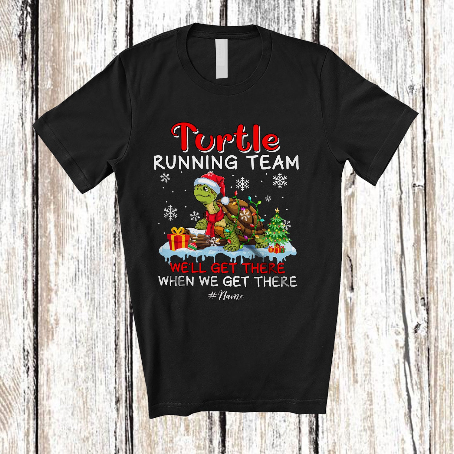 • Personalized Turtle Running Team; Lovely Christmas Santa Turtle Custom Name Runner T-Shirt. This cotton t-shirt is a durable staple product with a classic fit. One of the most popular items, it has a relaxed style made for everyday and casual wear.