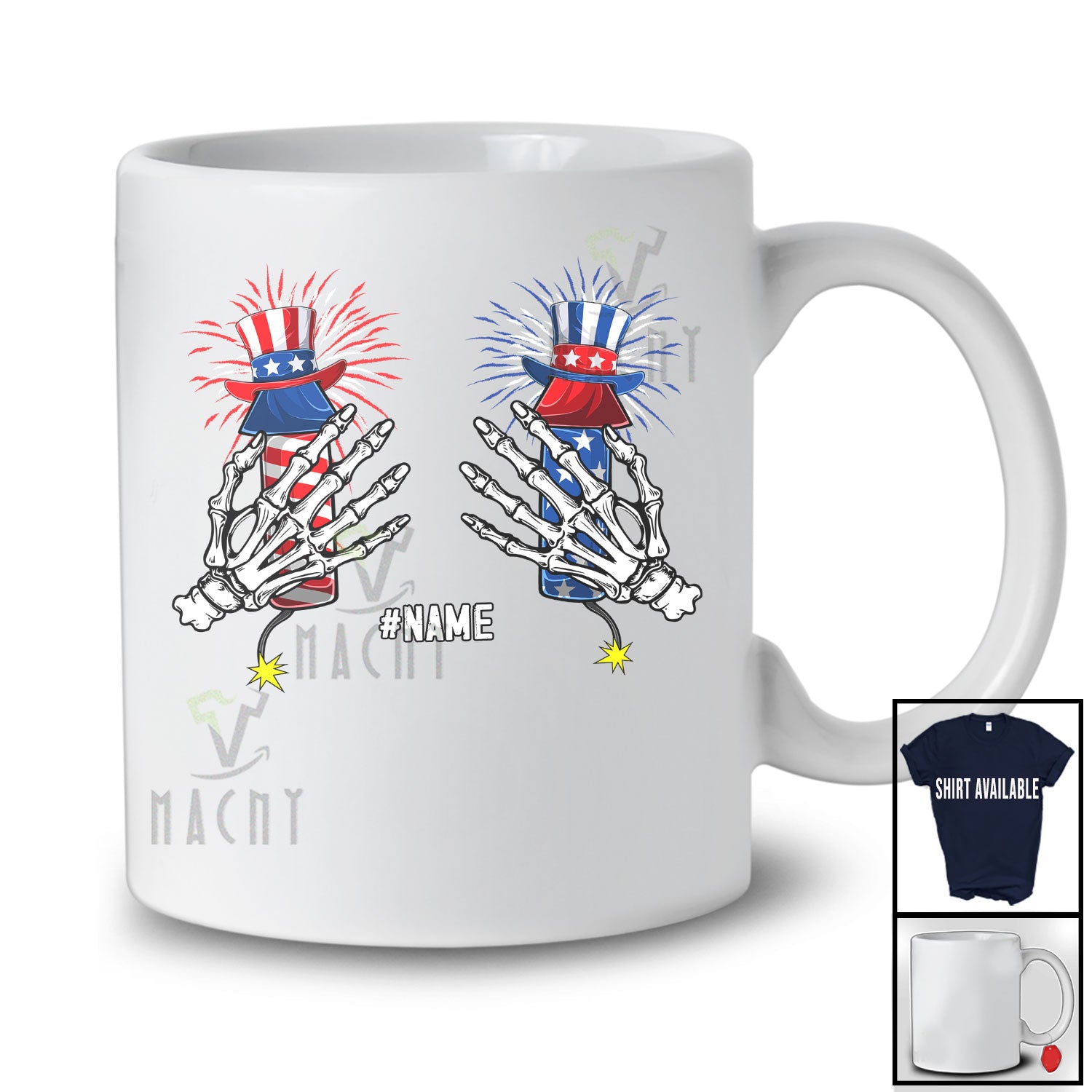 • Personalized Two Skeleton Hands On Fireworks; Amazing 4th of July Custom Name Women Family T-Shirt. This cotton t-shirt is a durable staple product with a classic fit. One of the most popular items, it has a relaxed style made for everyday and casual wear.