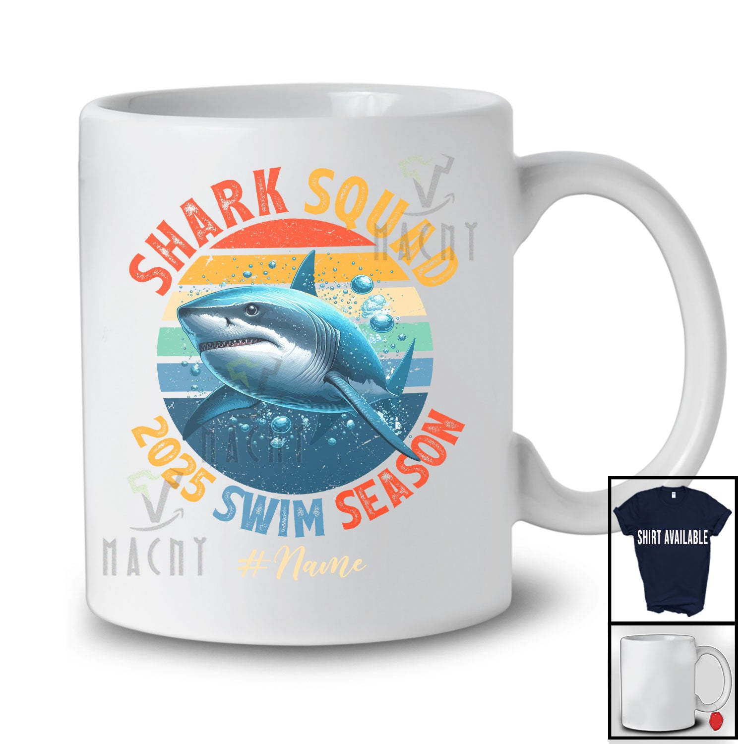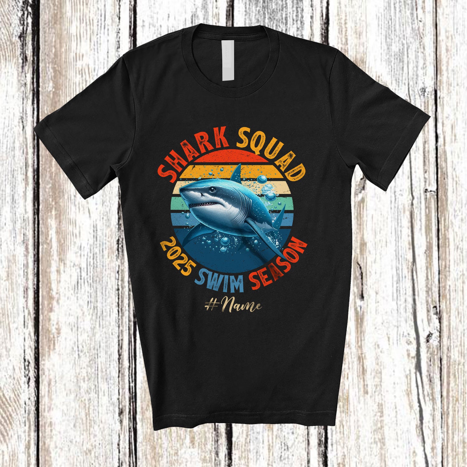 Personalized Vintage Retro Shark Squad 2025 Swim Season; Lovely Custom Name Swimming T-Shirt