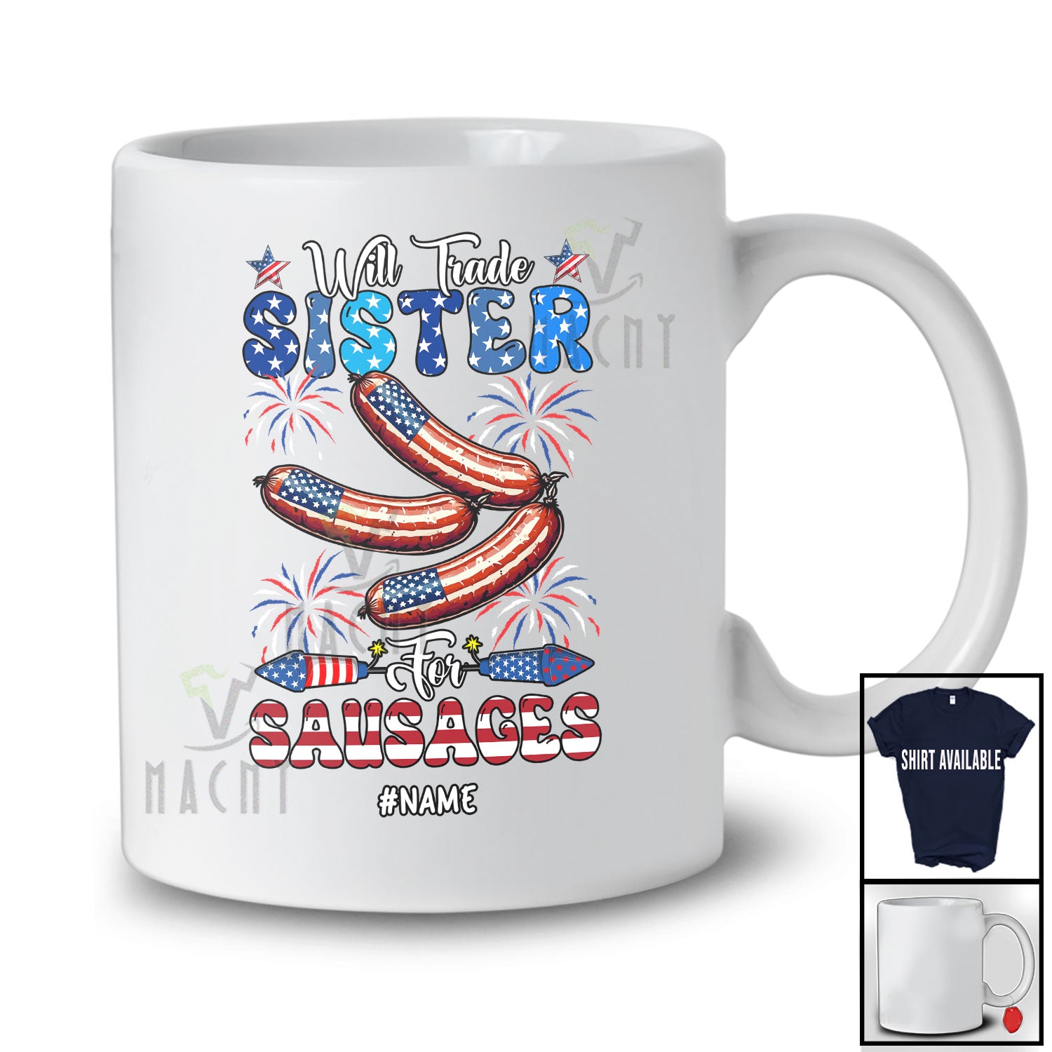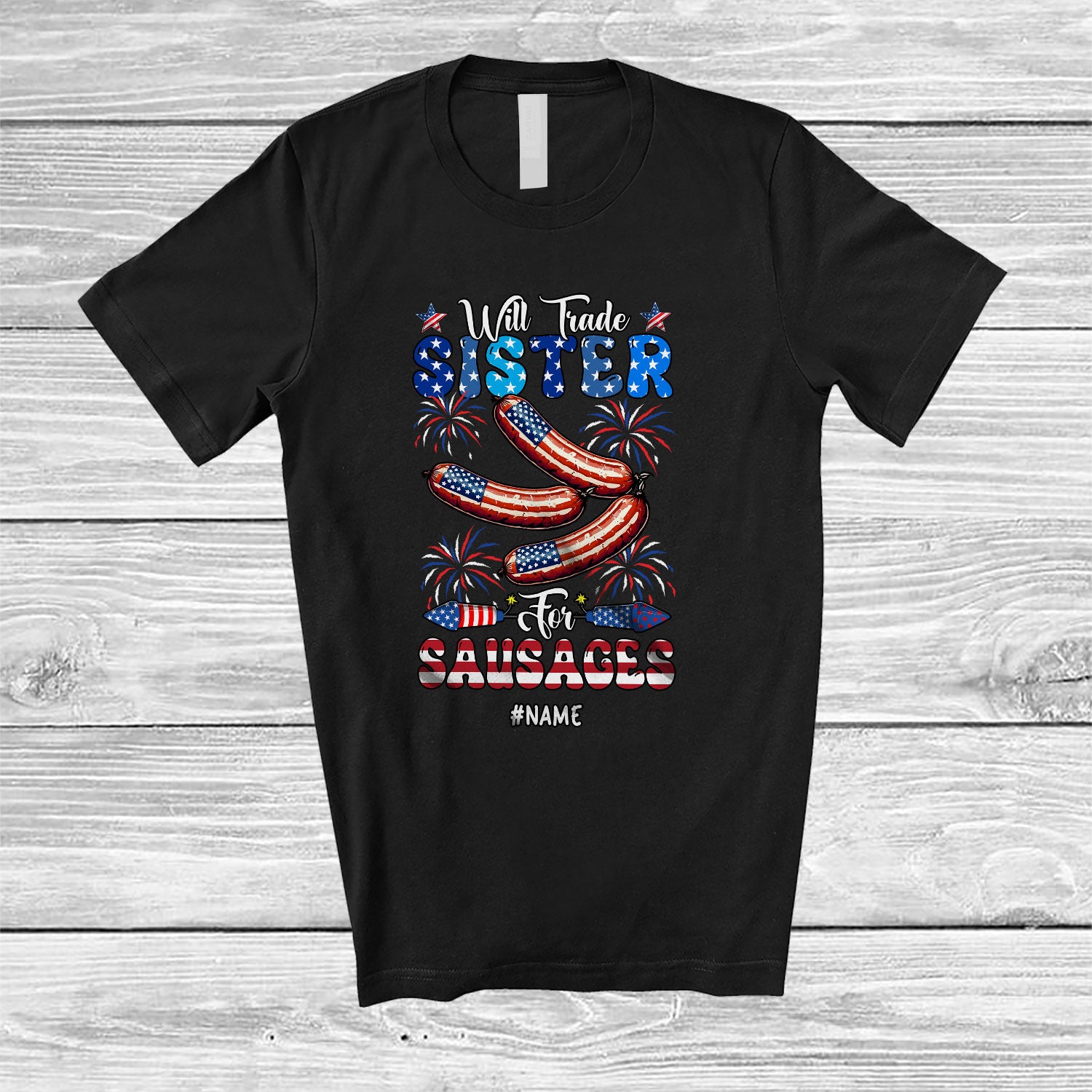 Personalized Will Trade Sister For Sausages; Joyful 4th of July Custom Name Family Food; Patriotic T-Shirt