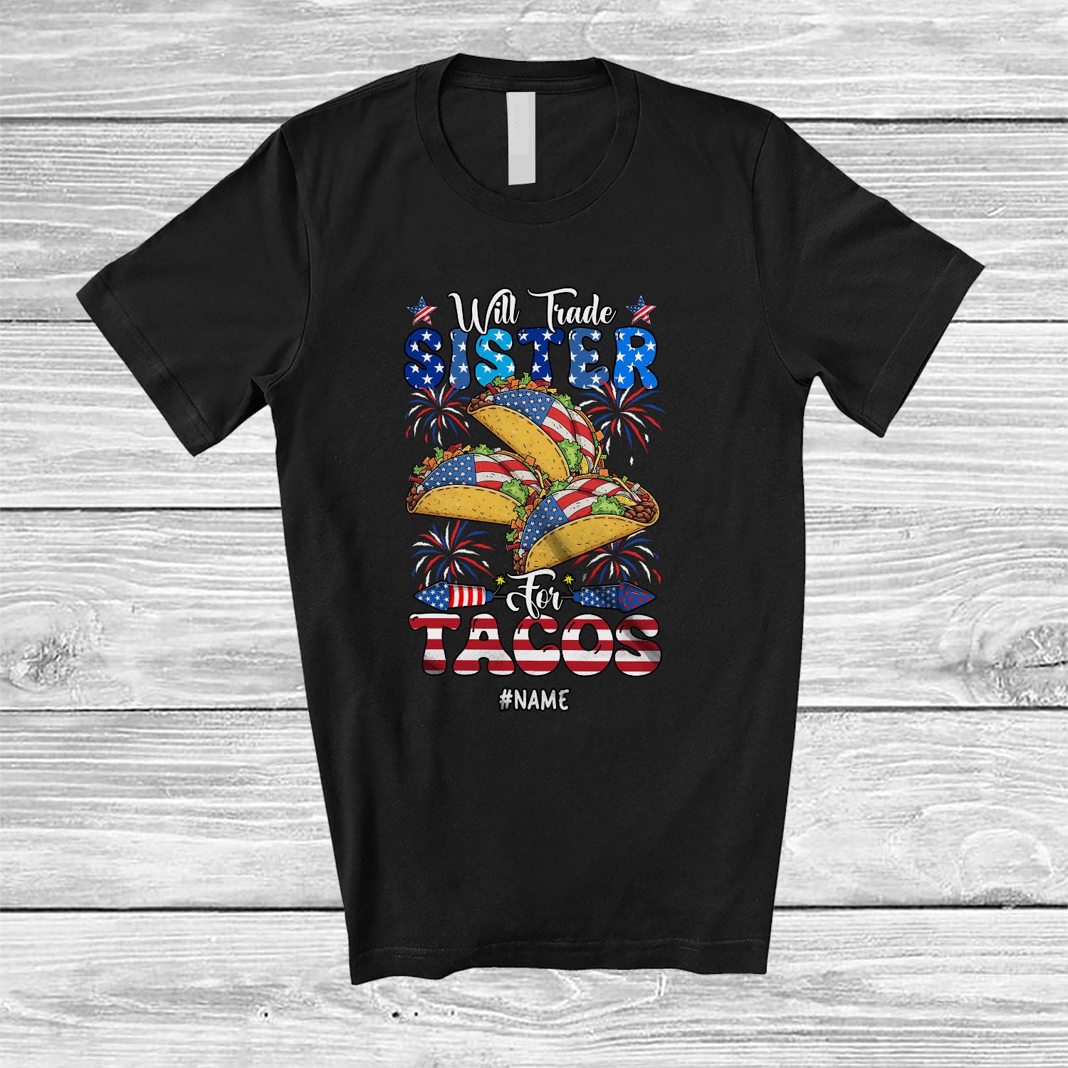 Personalized Will Trade Sister For Tacos; Joyful 4th of July Custom Name Family Food; Patriotic T-Shirt