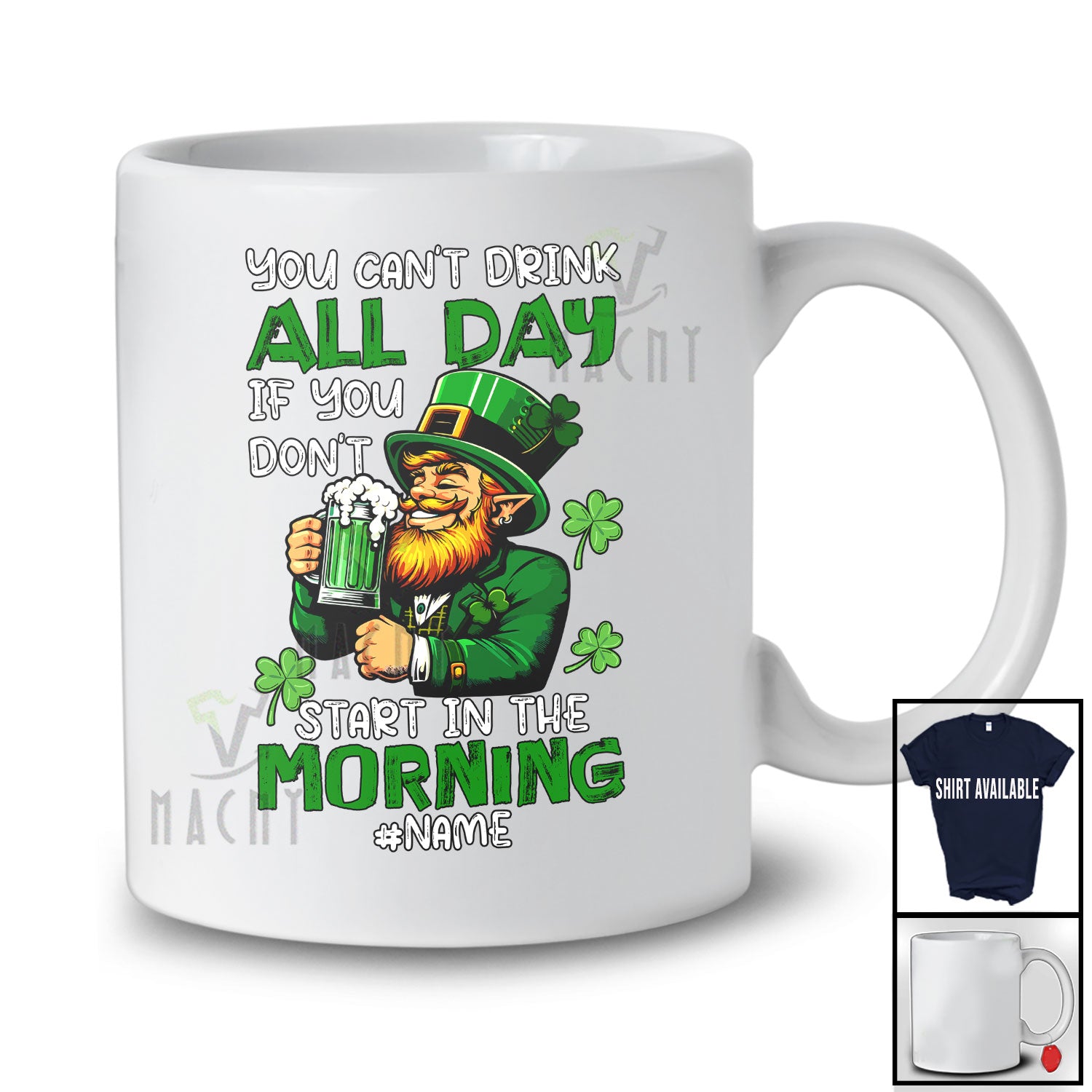 Personalized You Can't Drink All Day; Cheerful St. Patrick's Day Custom Name Leprechaun Drinking T-Shirt. This cotton t-shirt is a durable staple product with a classic fit. One of the most popular items, it has a relaxed style made for everyday and casual wear.