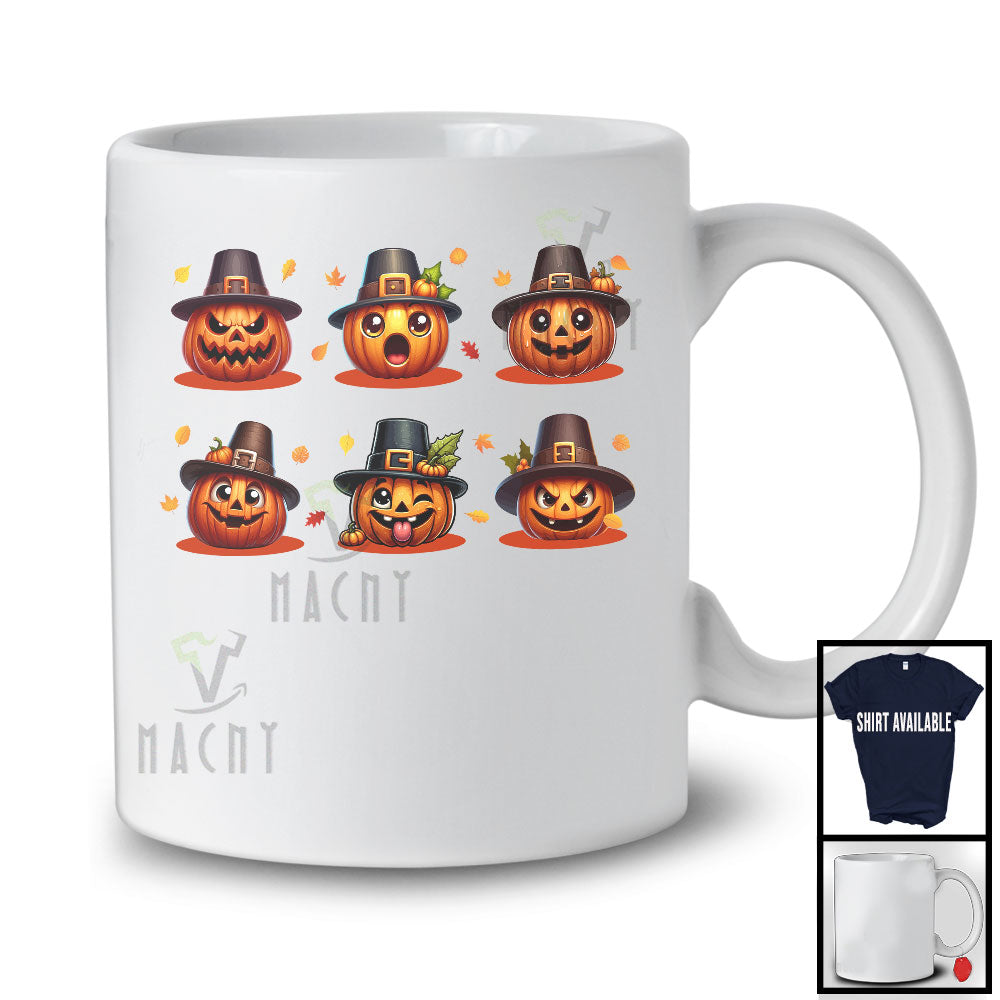 Pilgrim Carved Pumpkin Emotions Collection, Lovely Thanksgiving Costume Fall Leaves, Family T-Shirt