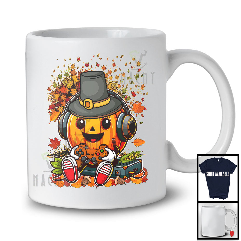 Pilgrim Carved Pumpkin Wearing Headset Gaming; Joyful Thanksgiving Video Game; Gamer T-Shirt. This cotton t-shirt is a durable staple product with a classic fit. One of the most popular items, it has a relaxed style made for everyday and casual wear.