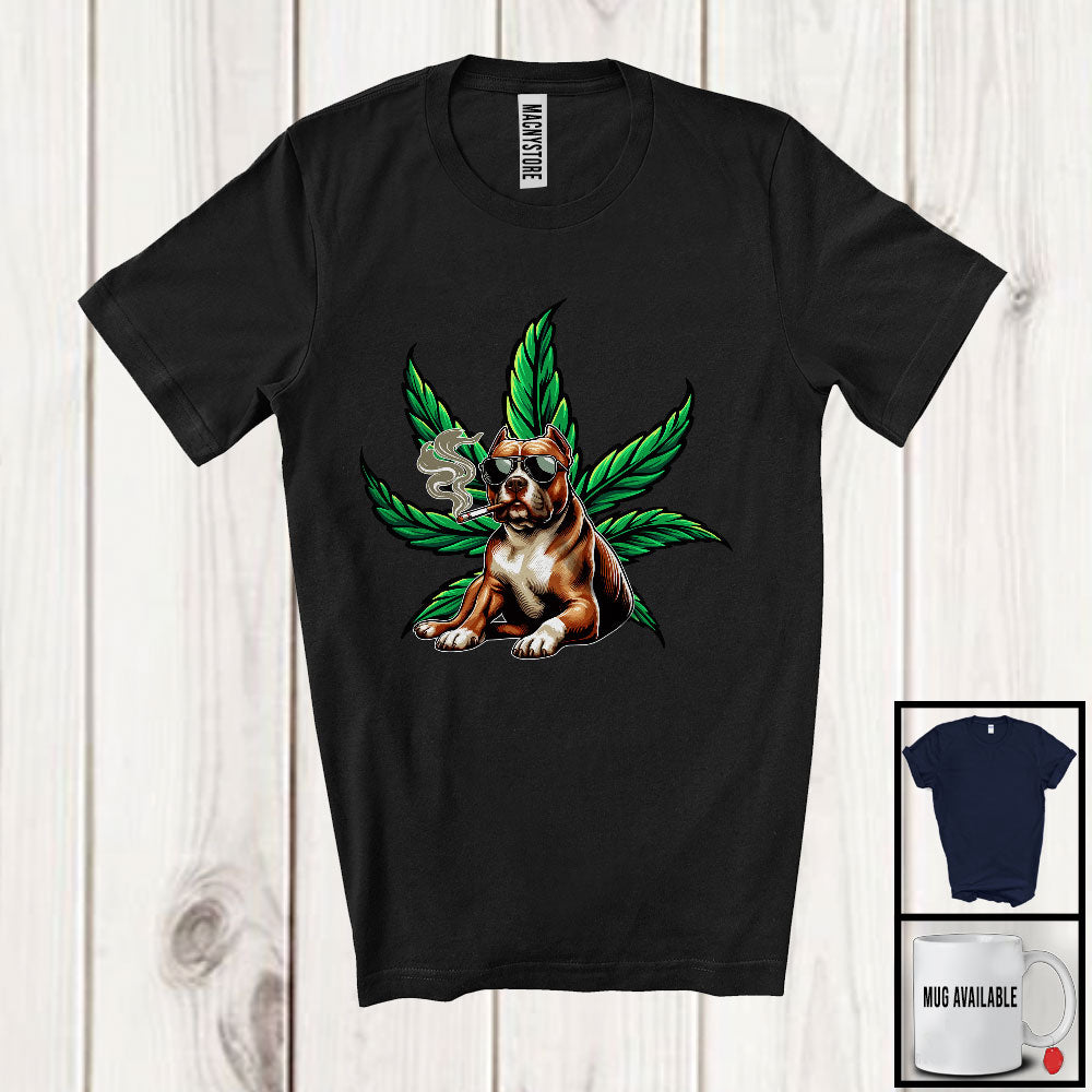 Pit Bull Sunglasses Smoker, Humorous Puppy Owner Lover, Matching 420 Stoner Smoker Group T-Shirt